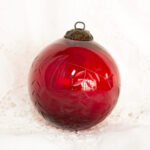 Vintage Large Red Etched Glass Ornament
