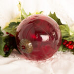 Cranberry Red Etched Glass Ornament