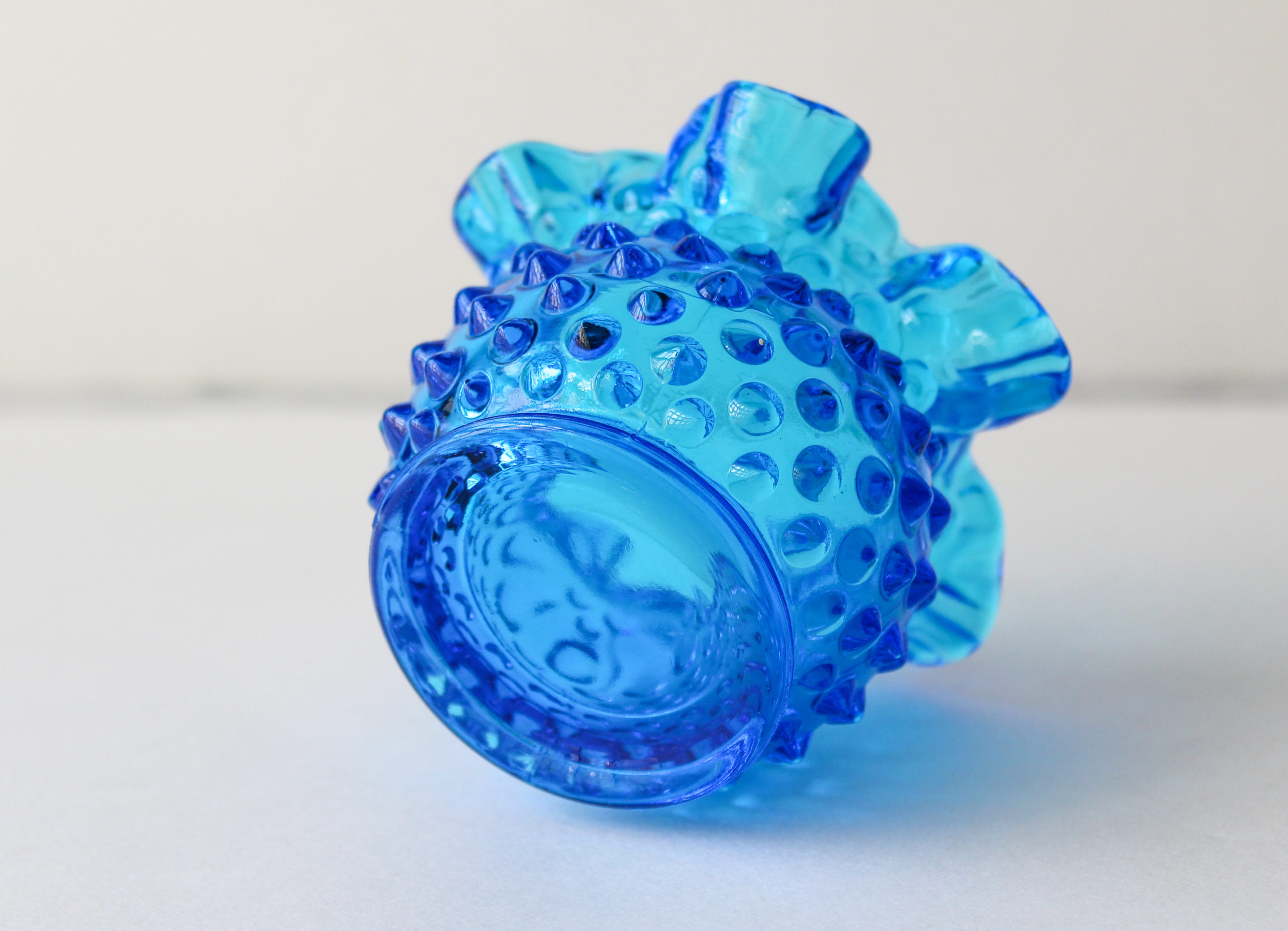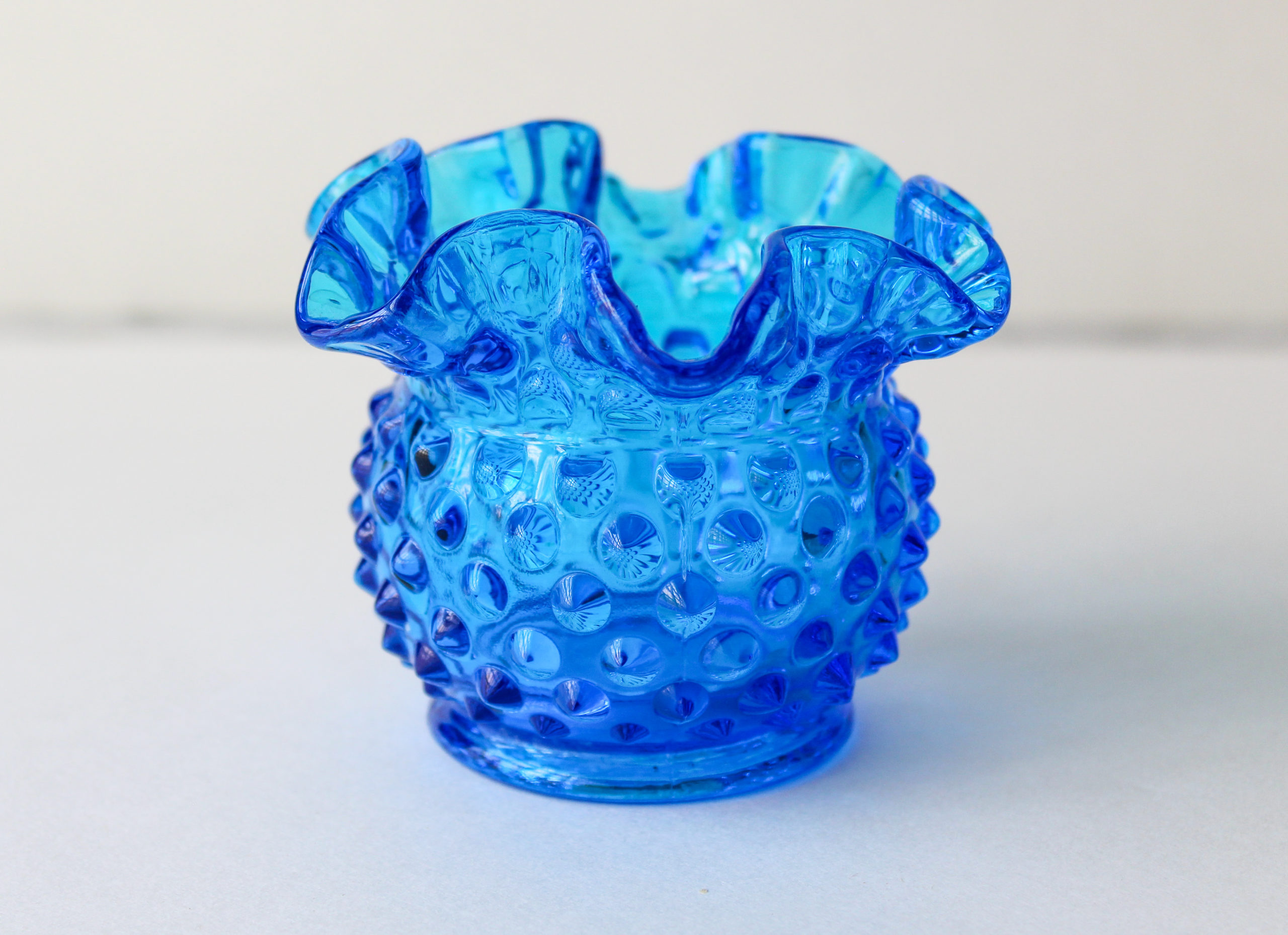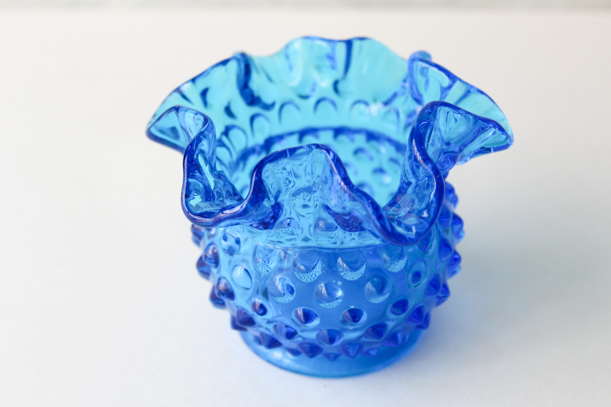Fenton Hobnail Glass Vase is Bright Blue With Ruffles