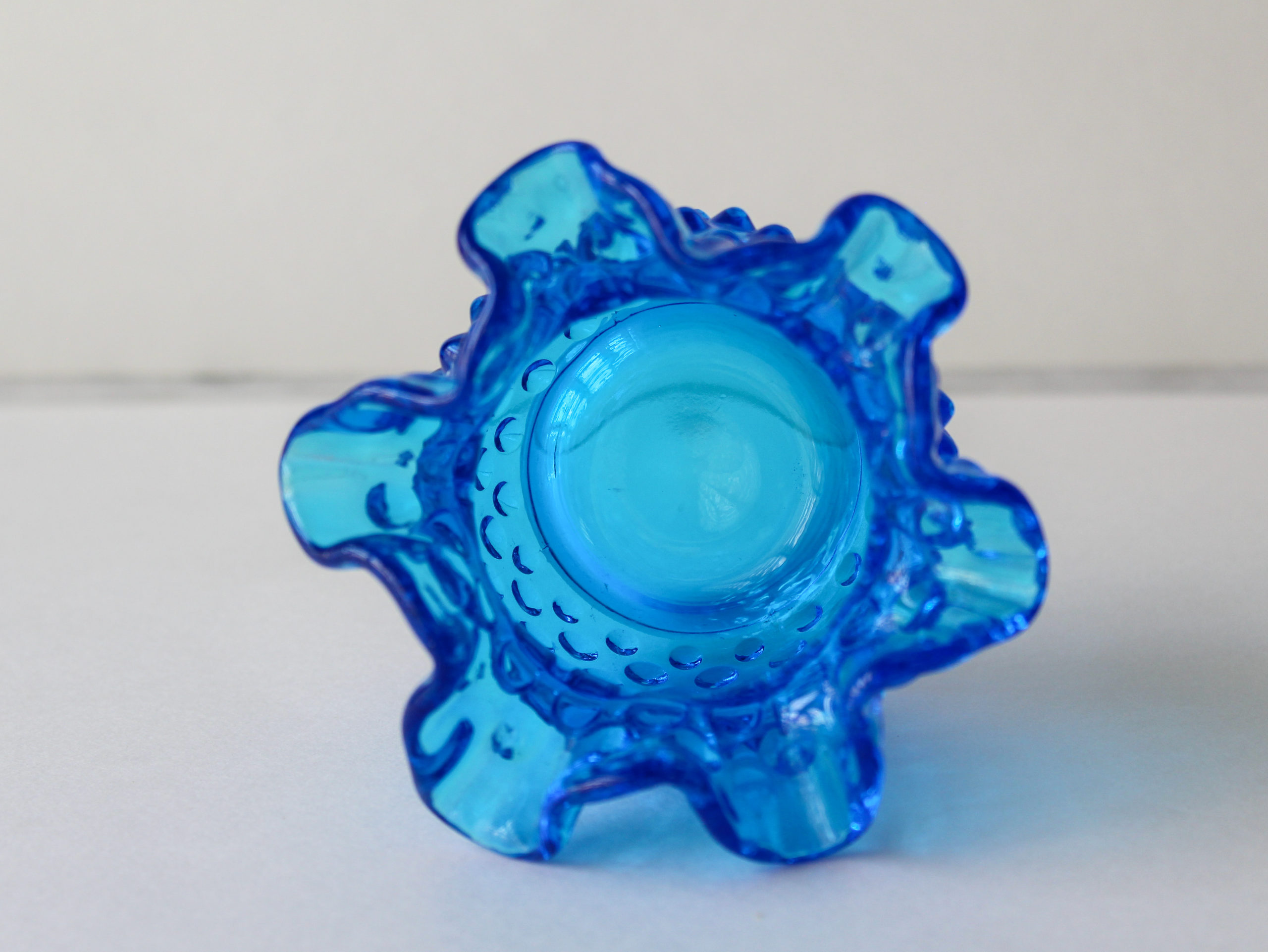 This Little Vase is Original 1960s Clear Blue Hobnail by Fenton
