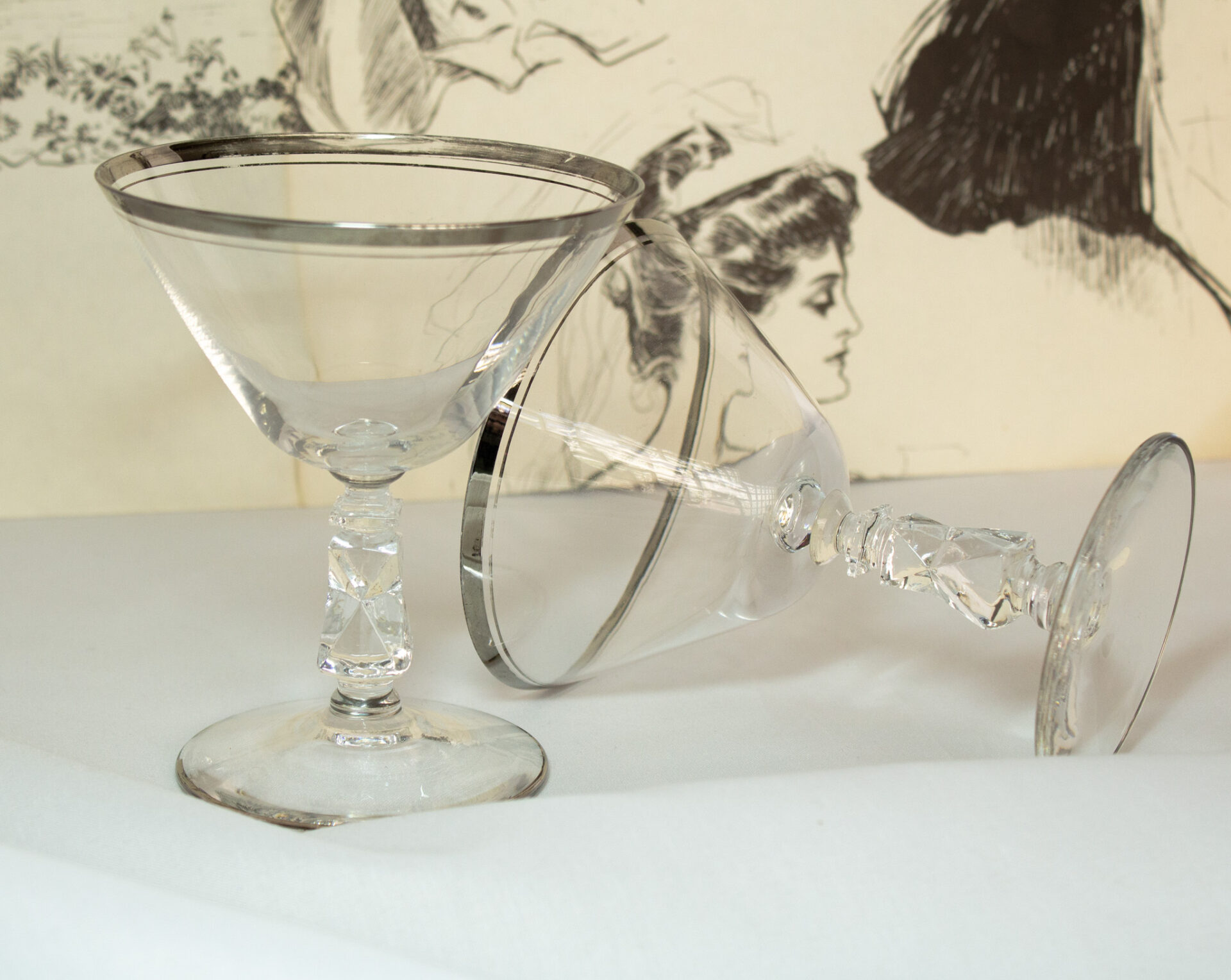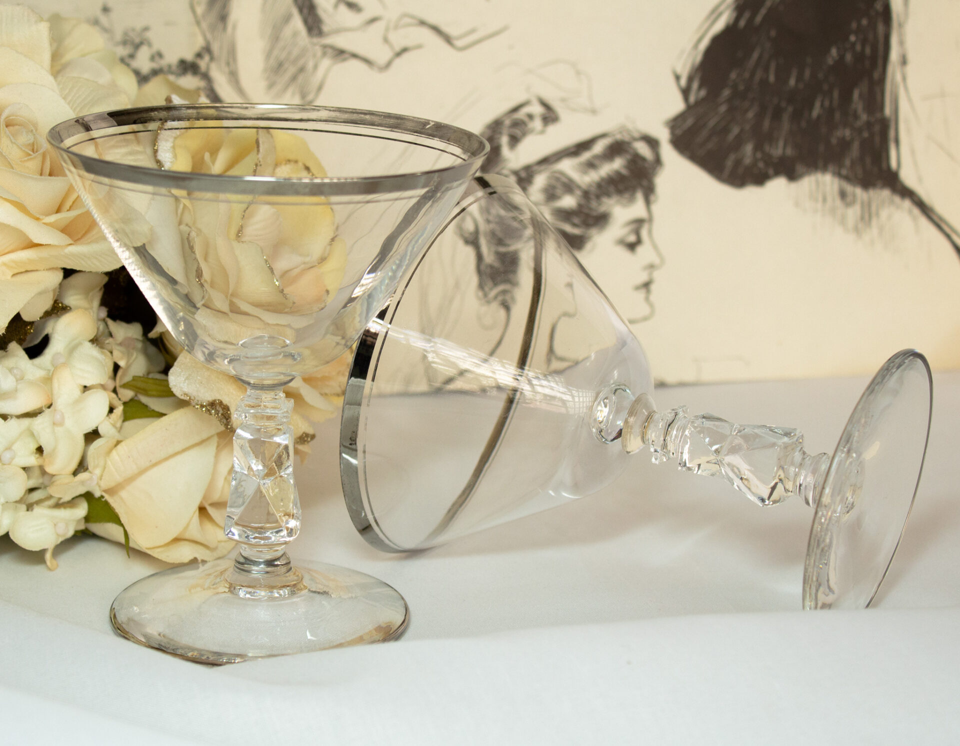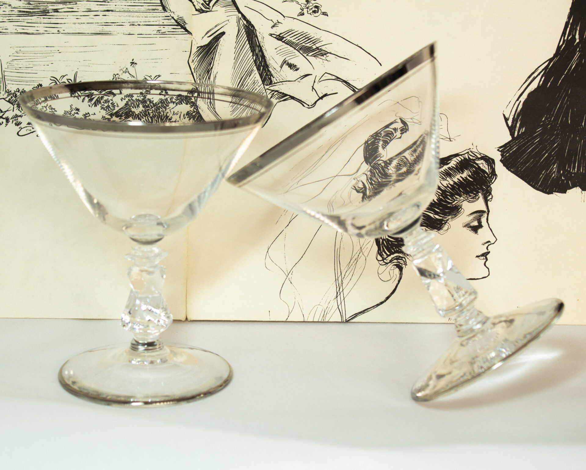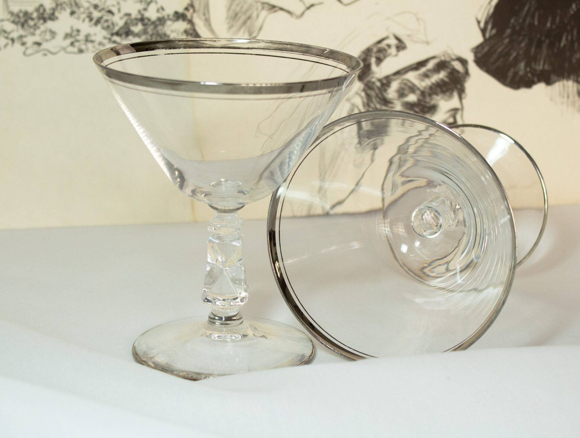 Platinum Rimmed Low Stem Martini Glasses Set Of Two