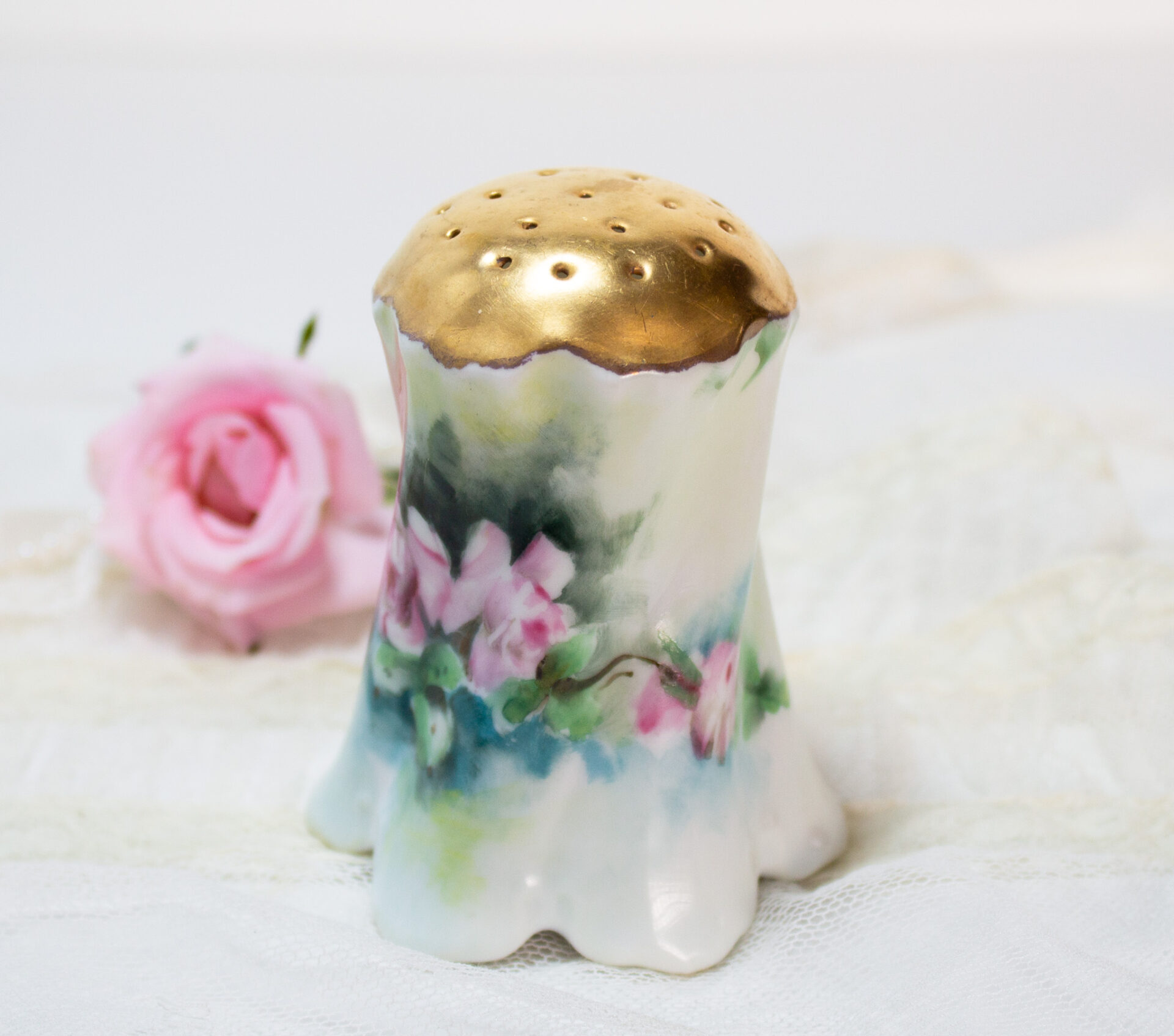 Vintage Hand-Painted Pink Roses Decorate This Bavarian Sugar Shaker.