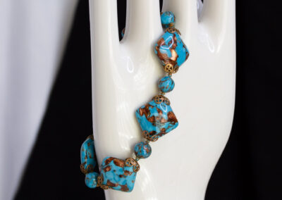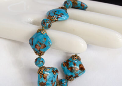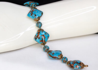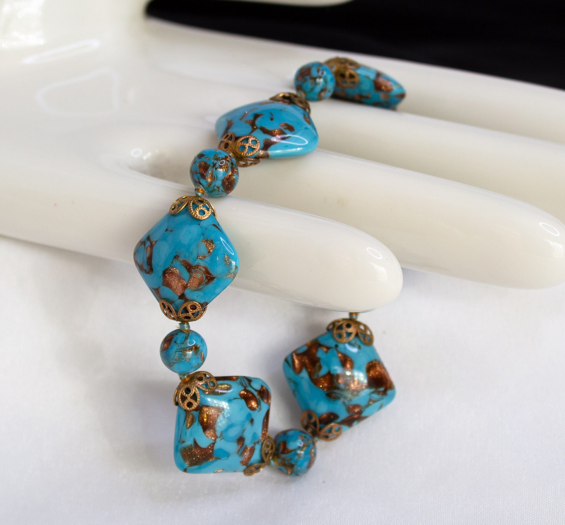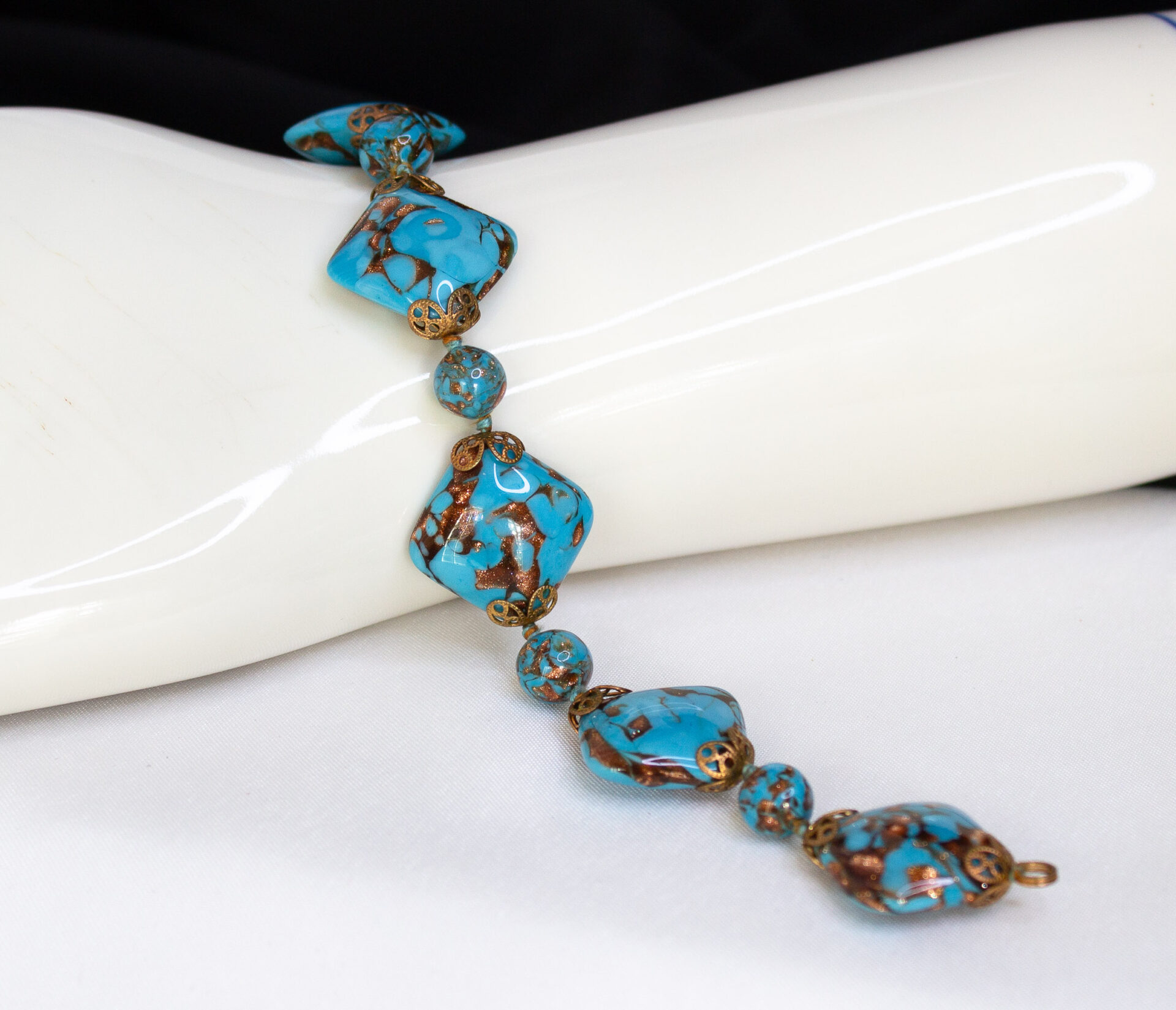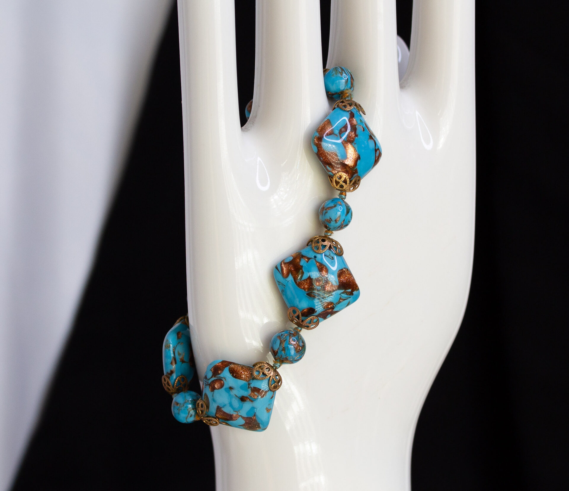Bracelet Features Puffed Blue Squares Marbled With Shimmery Copper Foil.