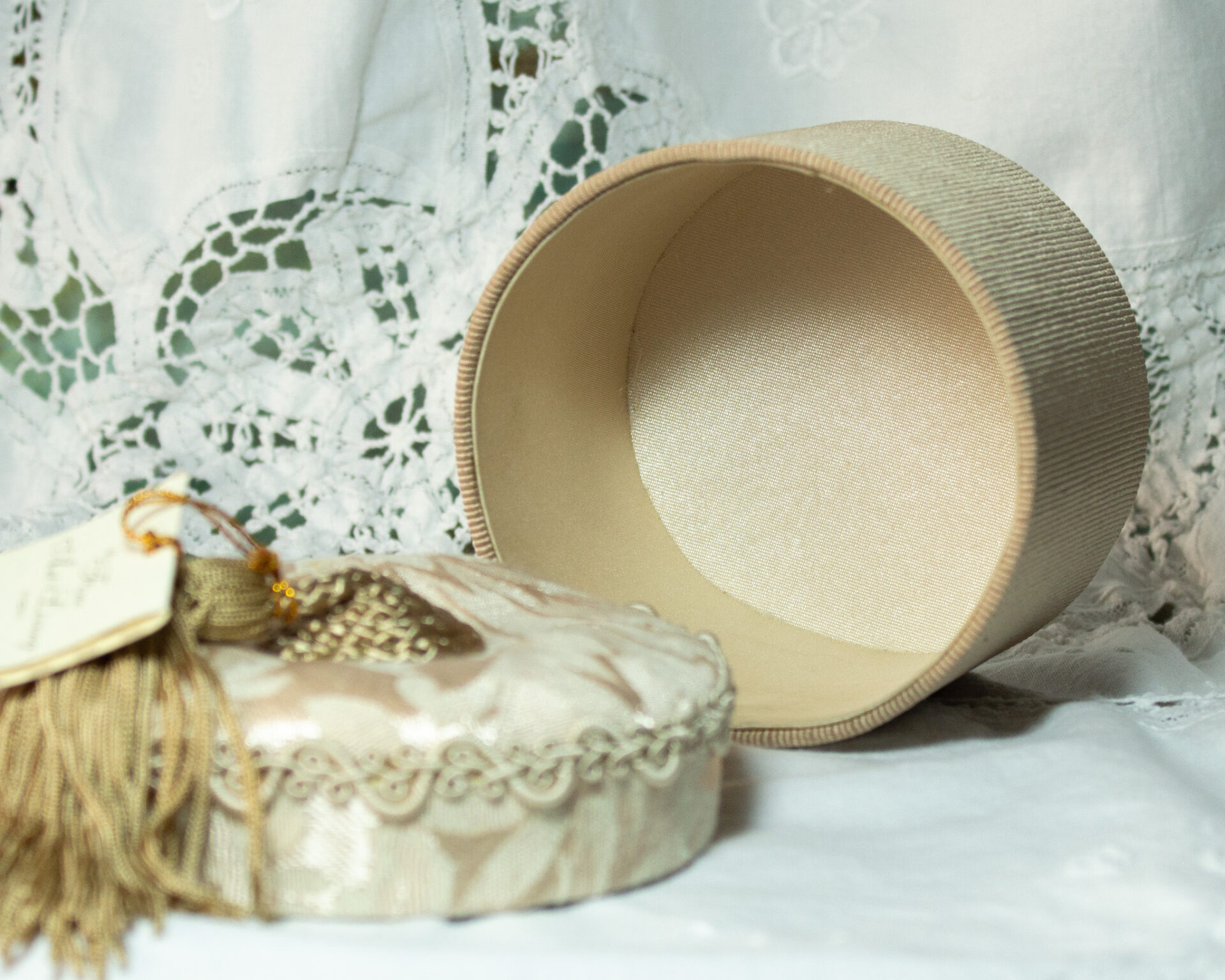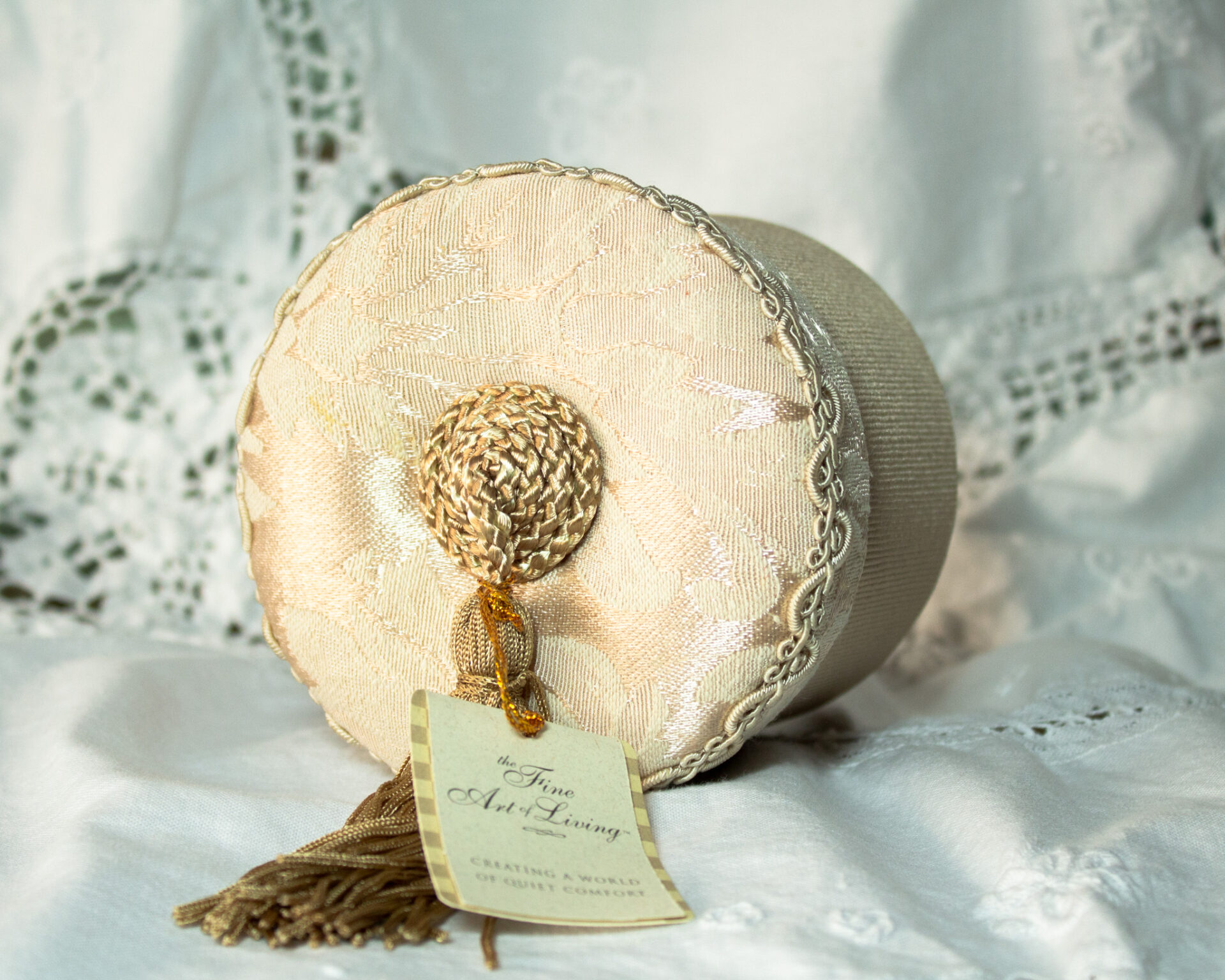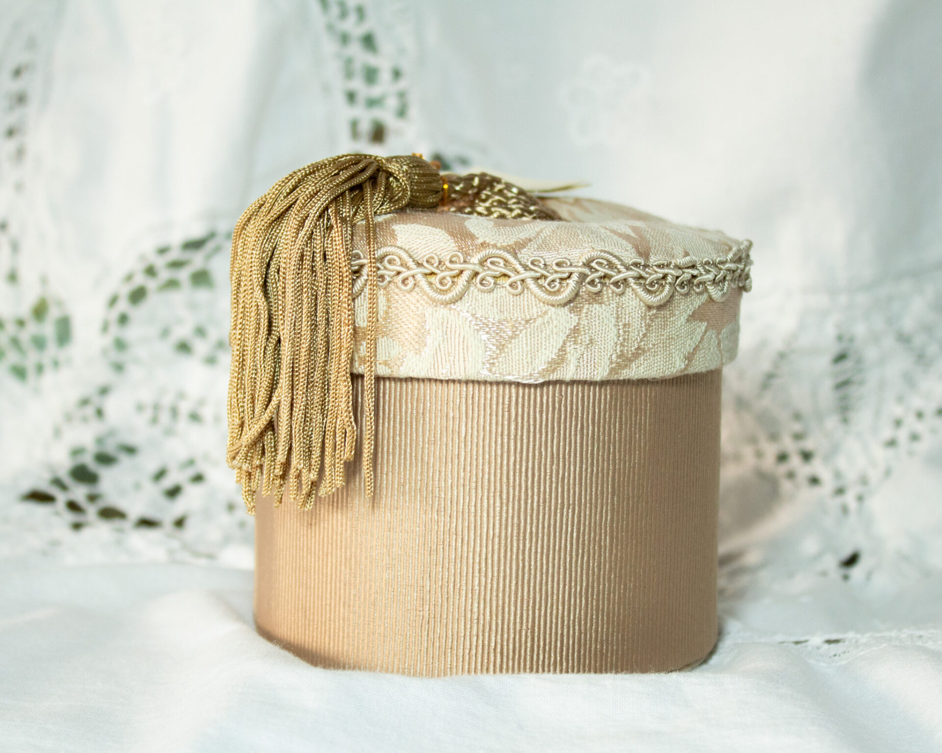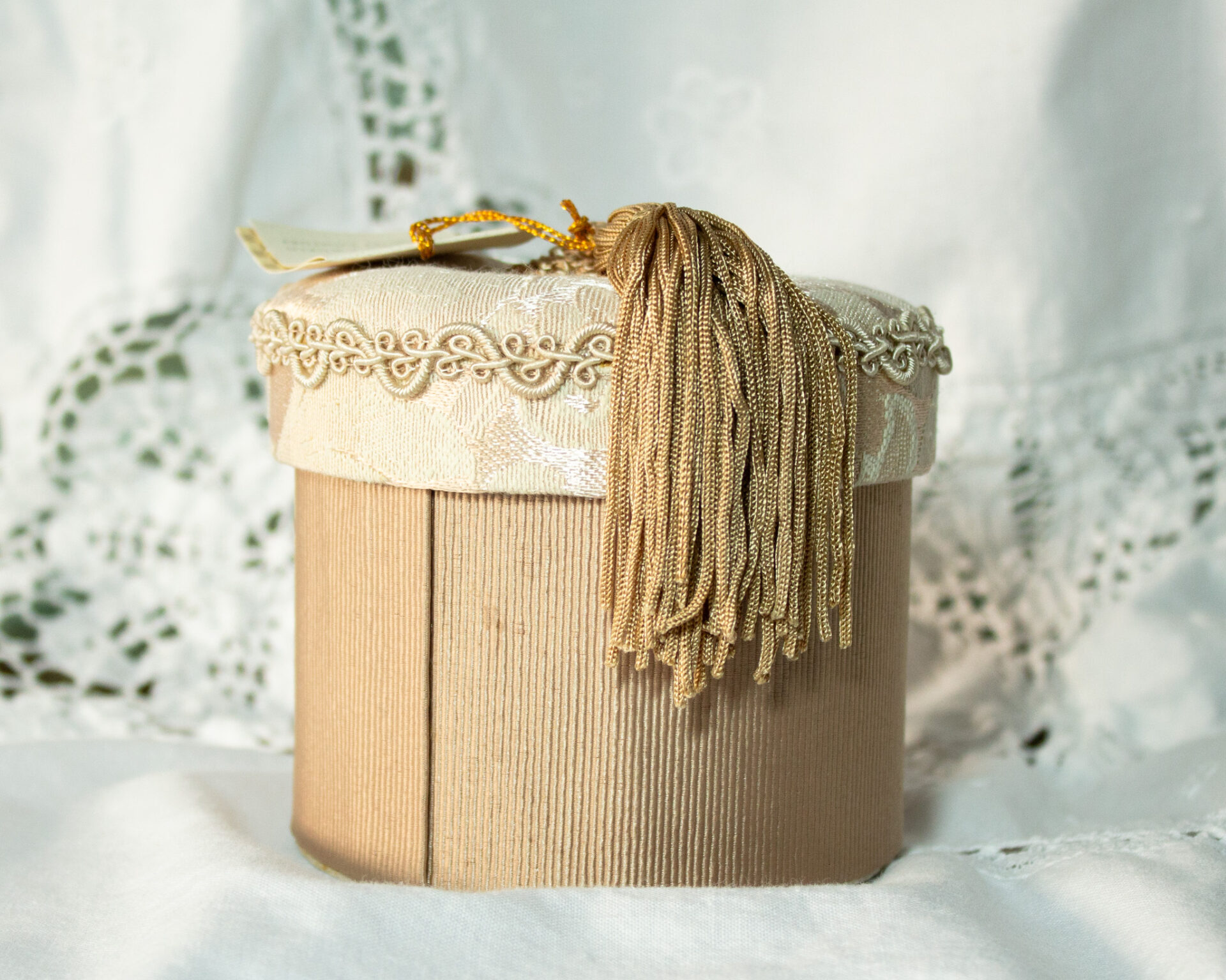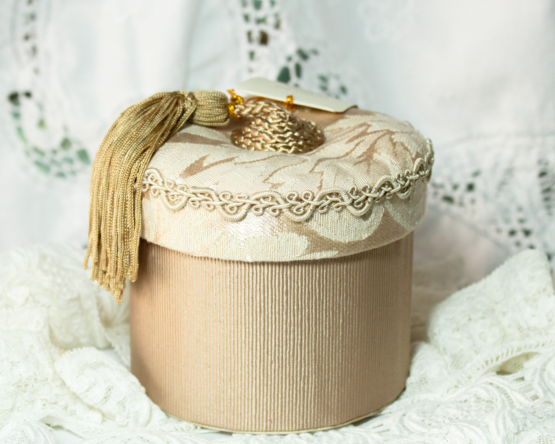 Fabric Trinket Box Dusty Rose Tassel On Lid