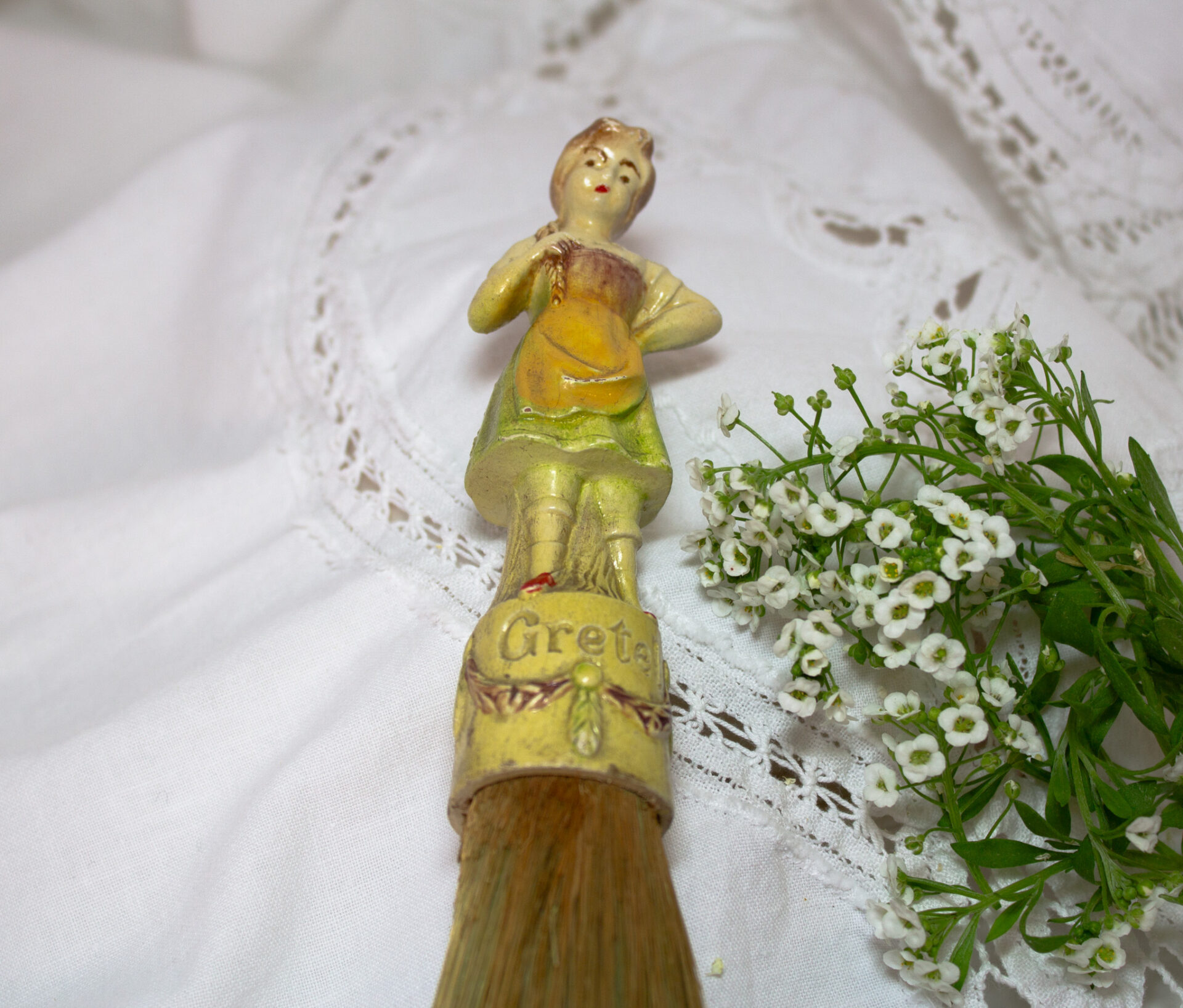 Gretel Half Doll Porcelain Clothes Brush