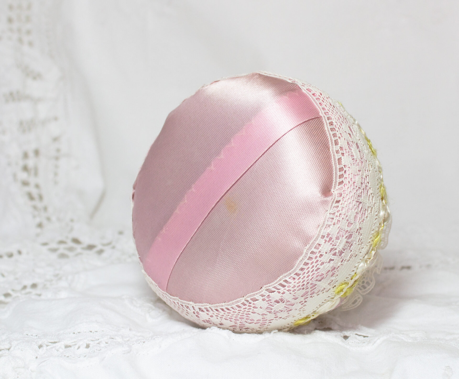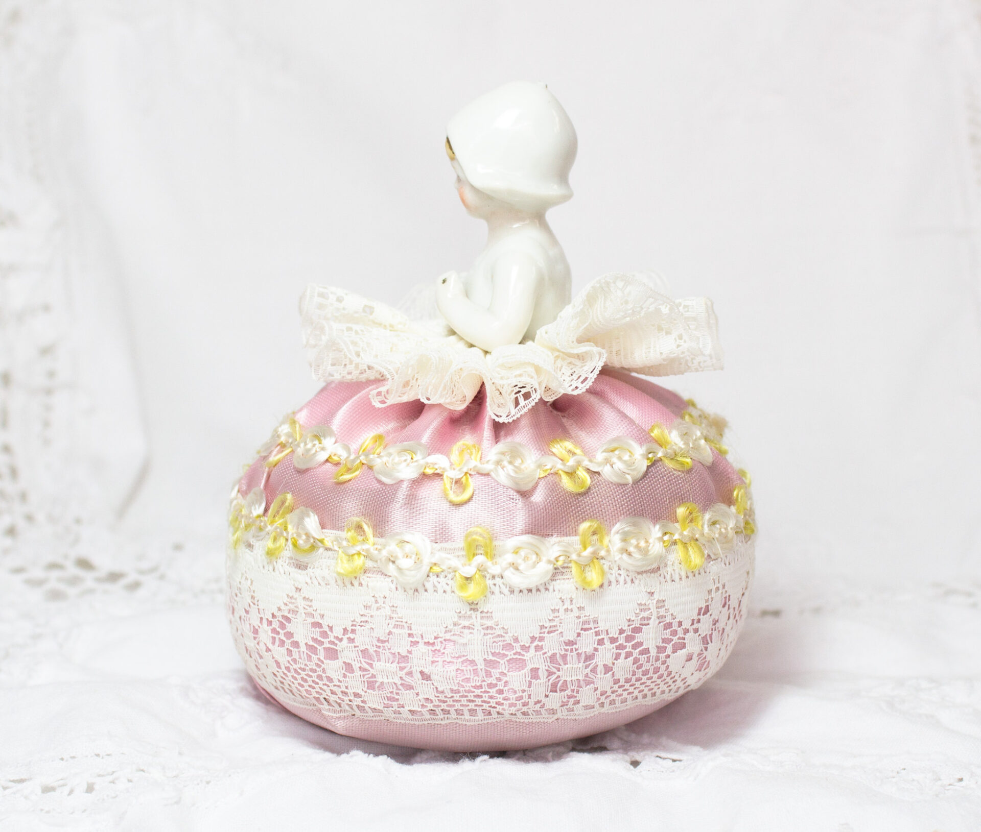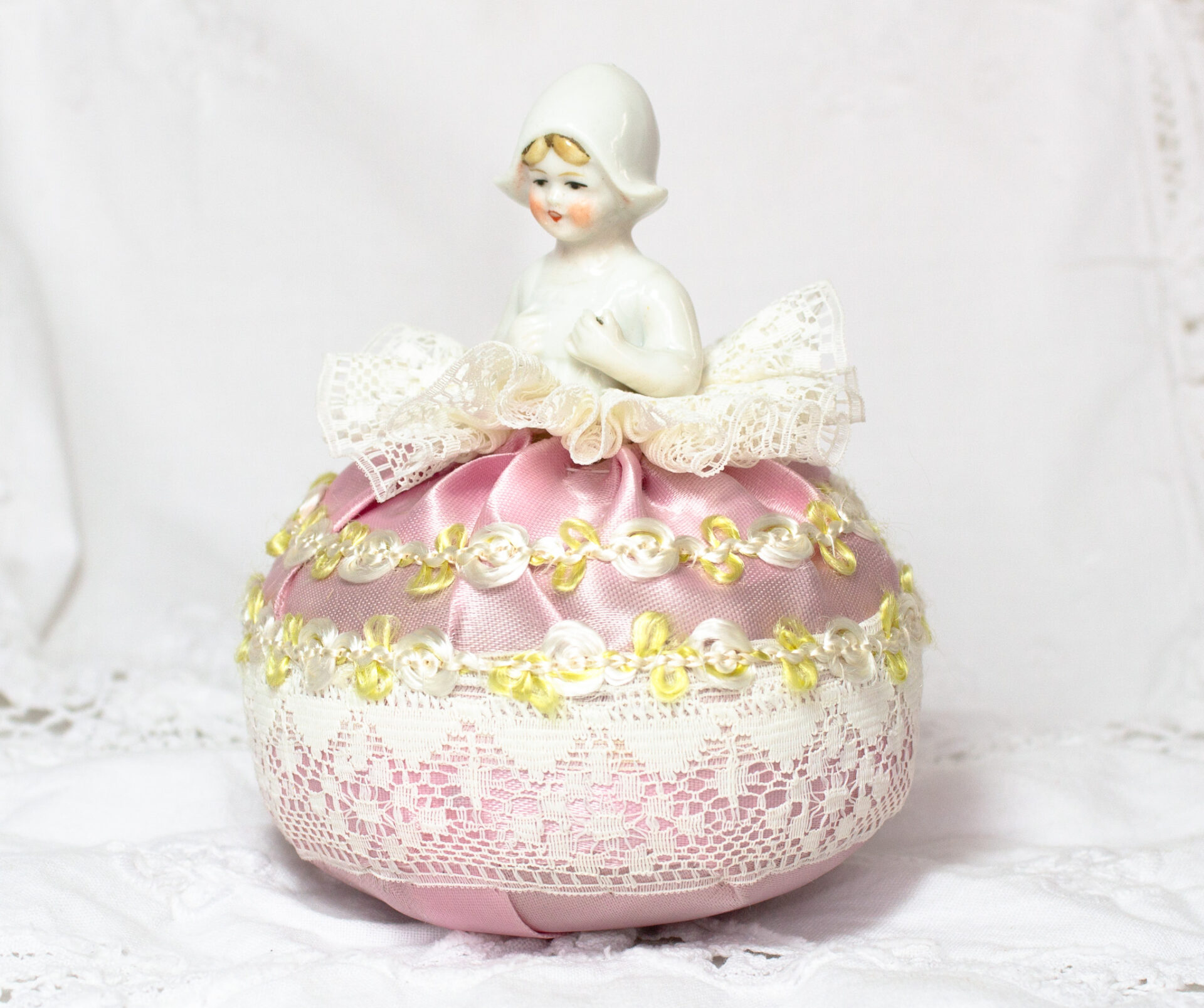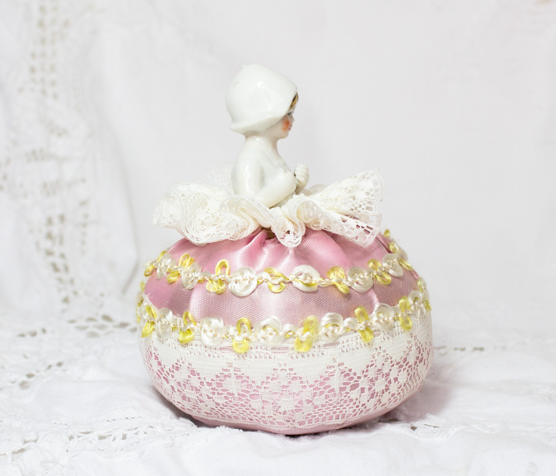 Half Doll Pincushion Pink Satin and Lace