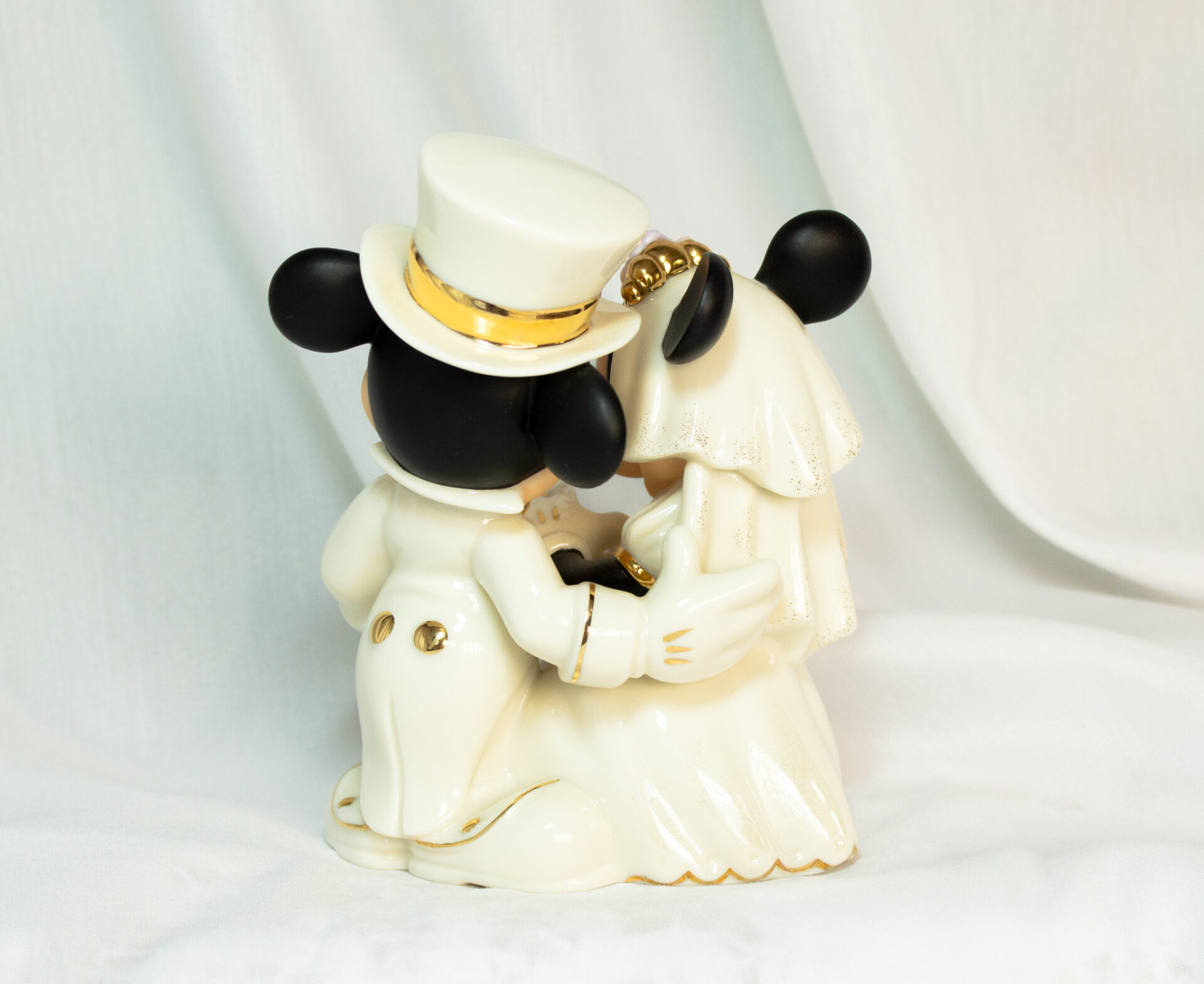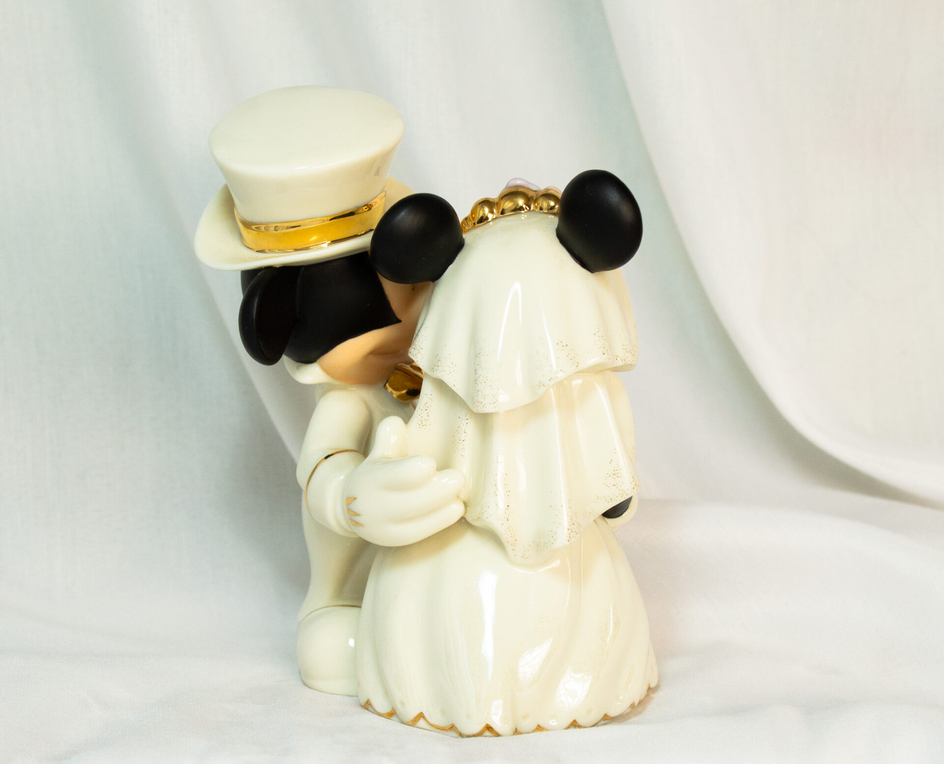 Minnie and Mickey Dazzle The Wedding With Creamy White Dress And Suit Trimed In Gold By Lenox.