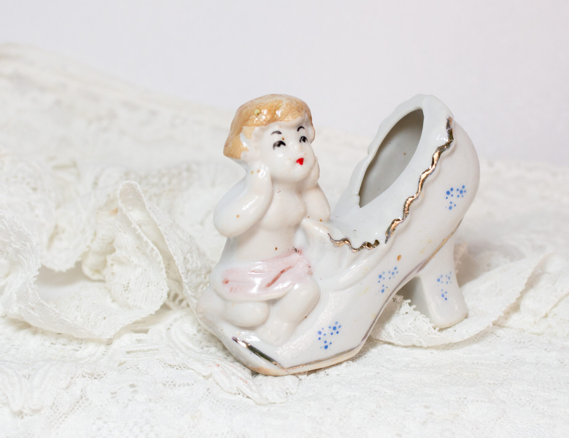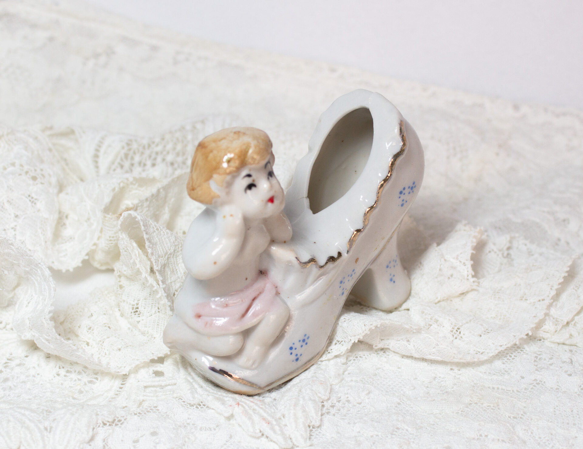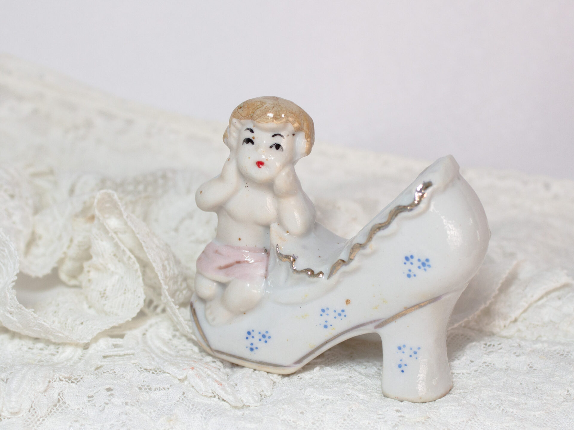 Porcelain Miniature Shoe Young Girl Figurine Vintage Collection