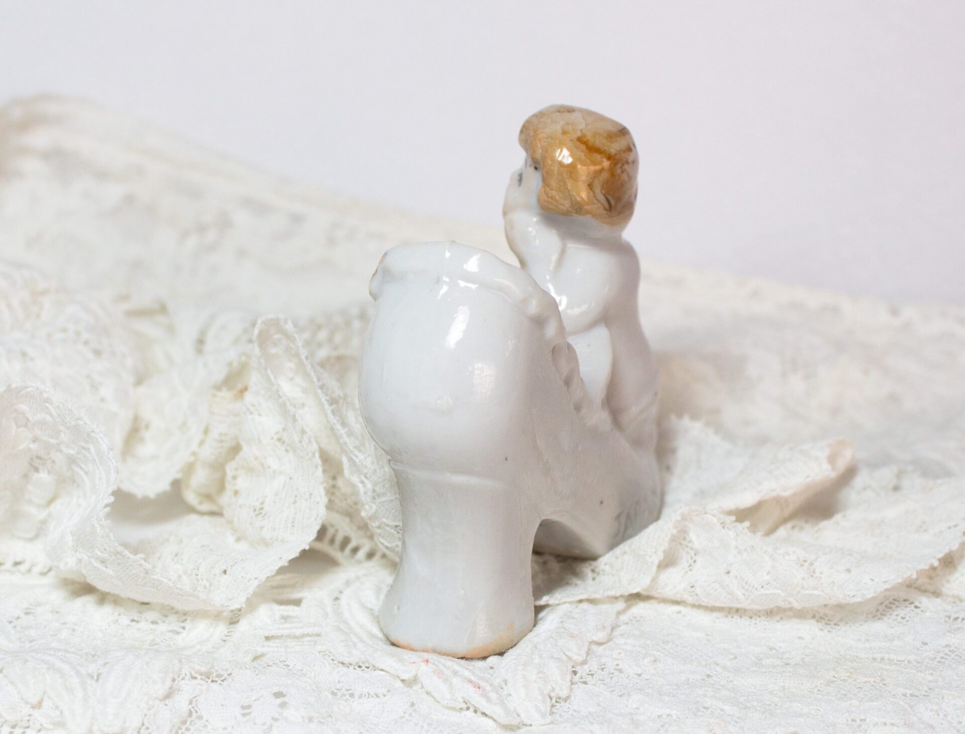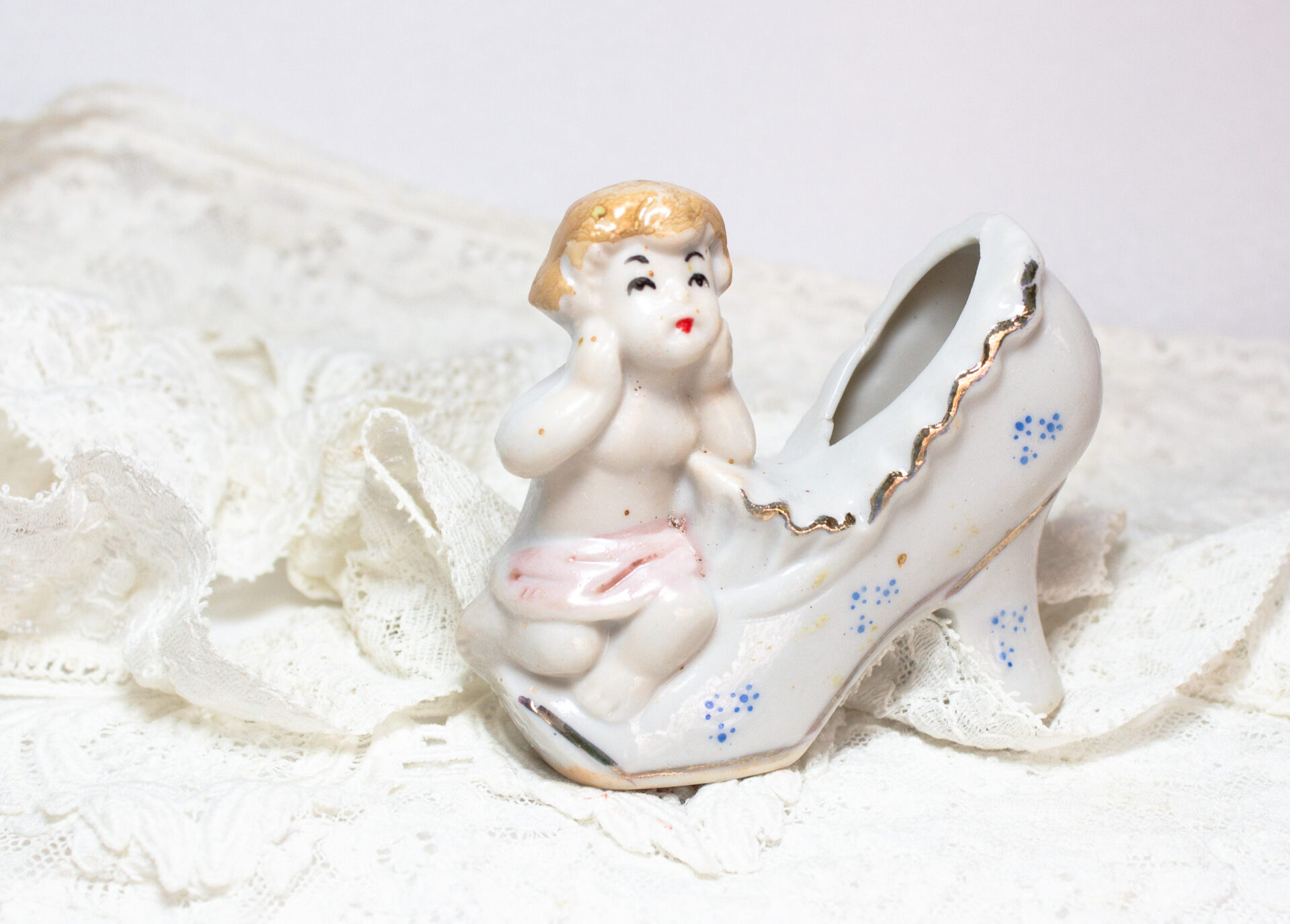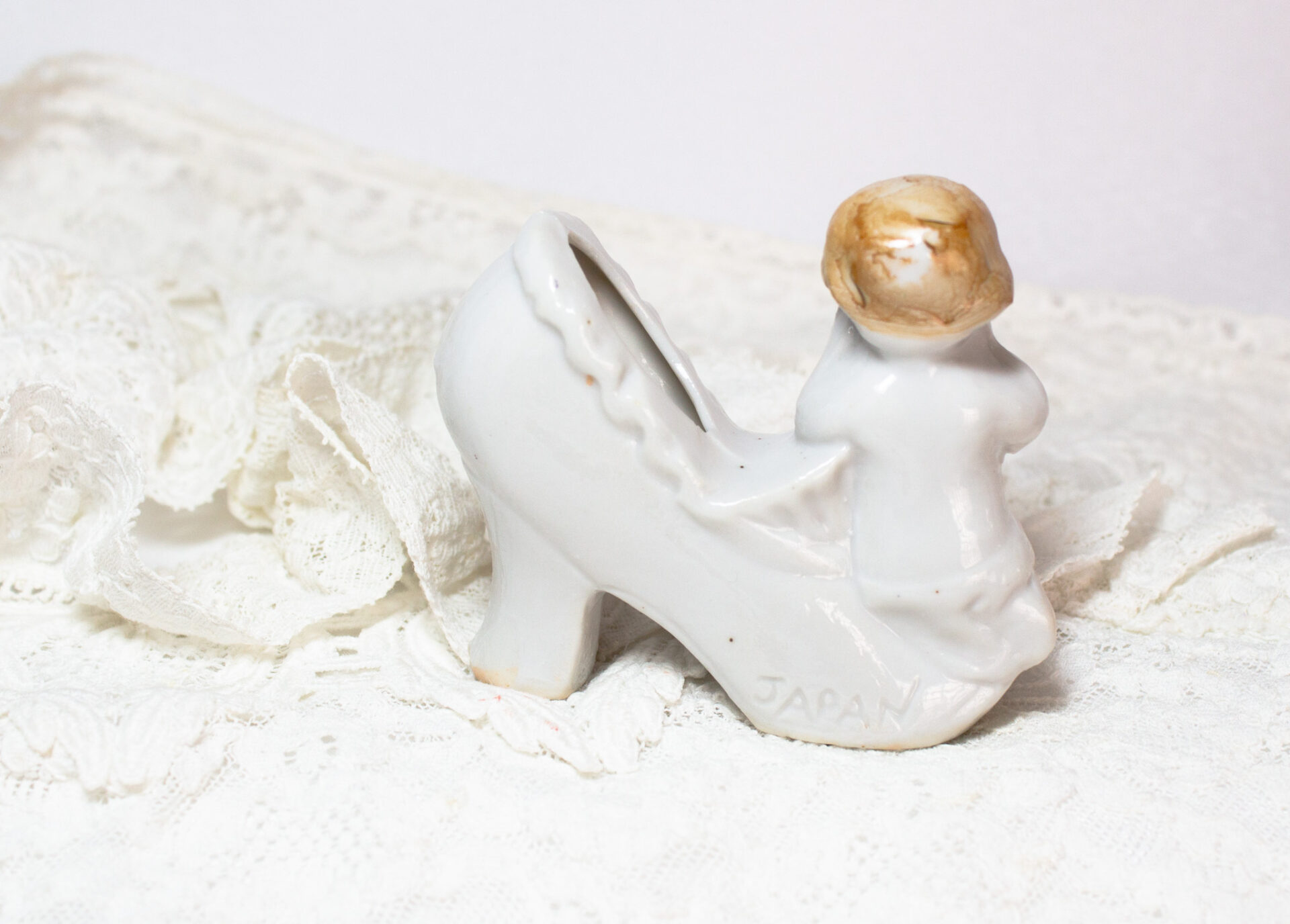Porcelain Miniature Shoe Young Girl Figurine Vintage Collection