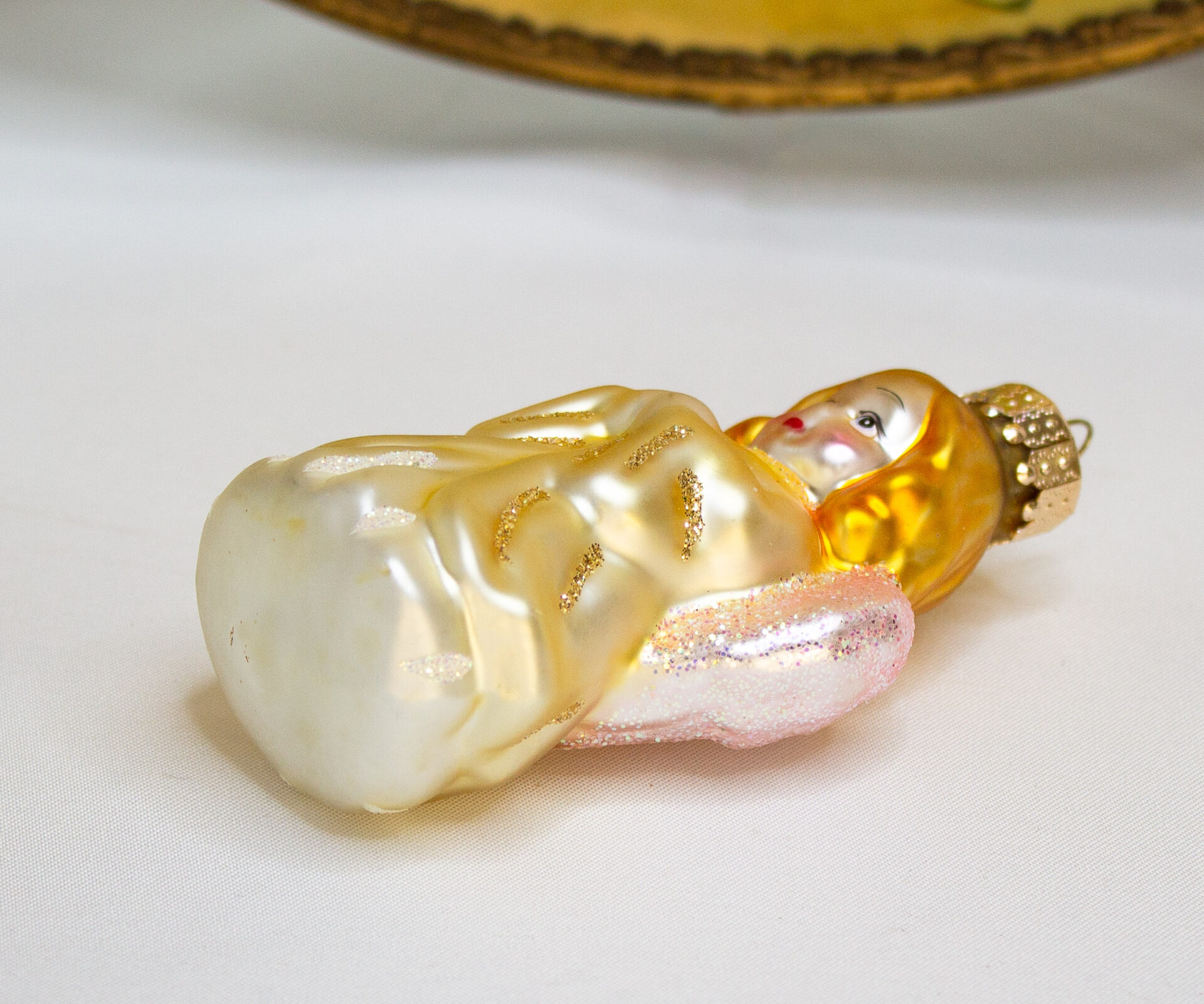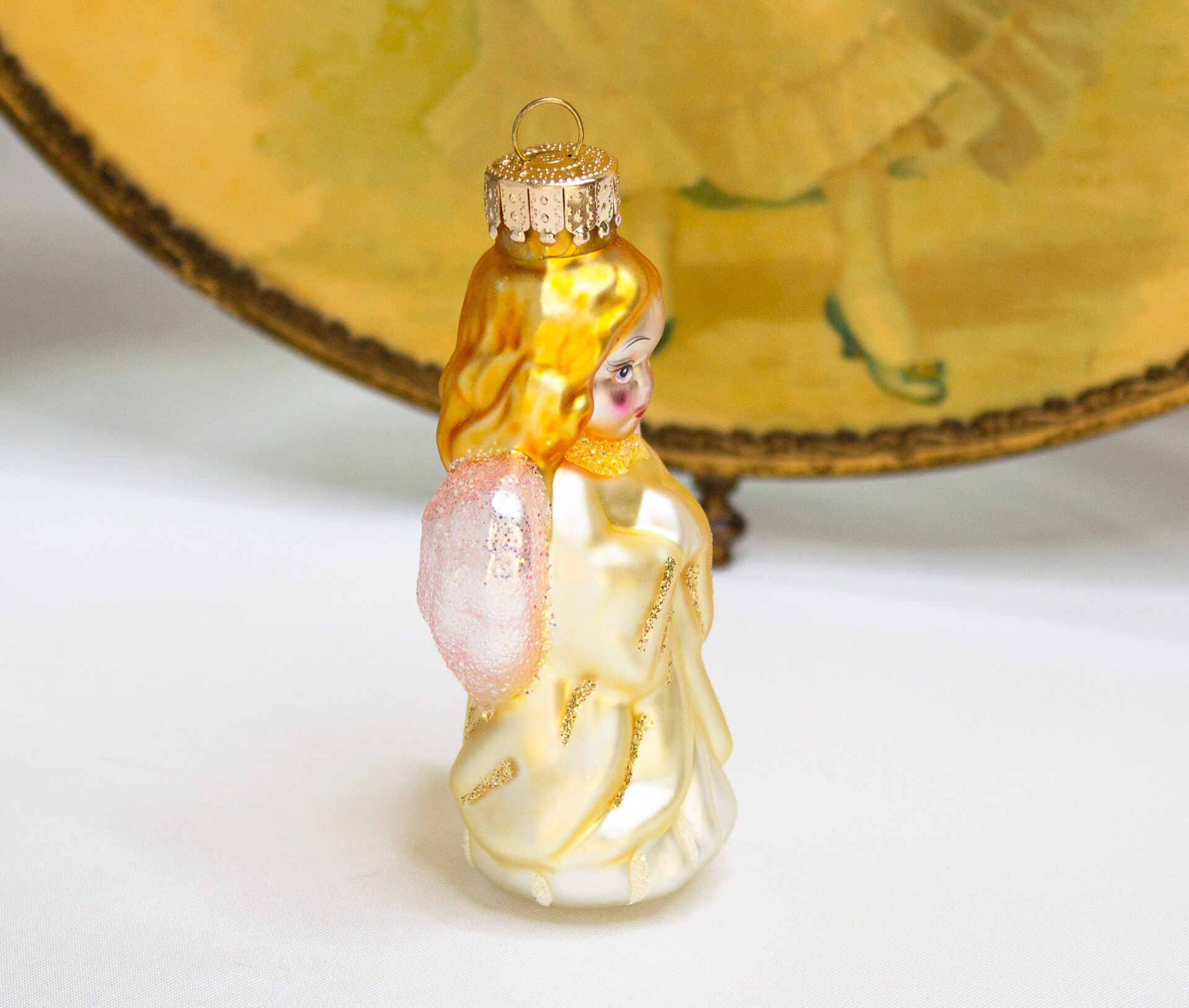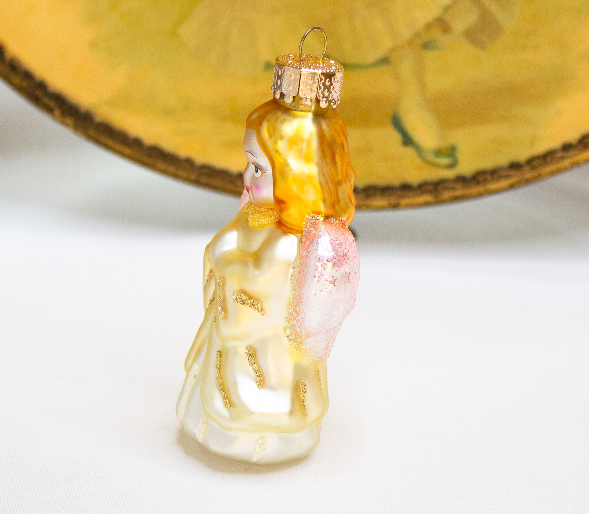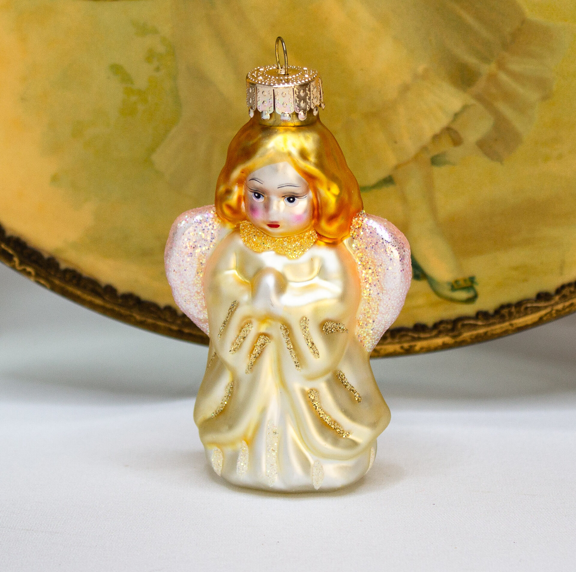Miniature 3-inch Angel With Shimmery Gold Hair and Gown Accented With Glitter.