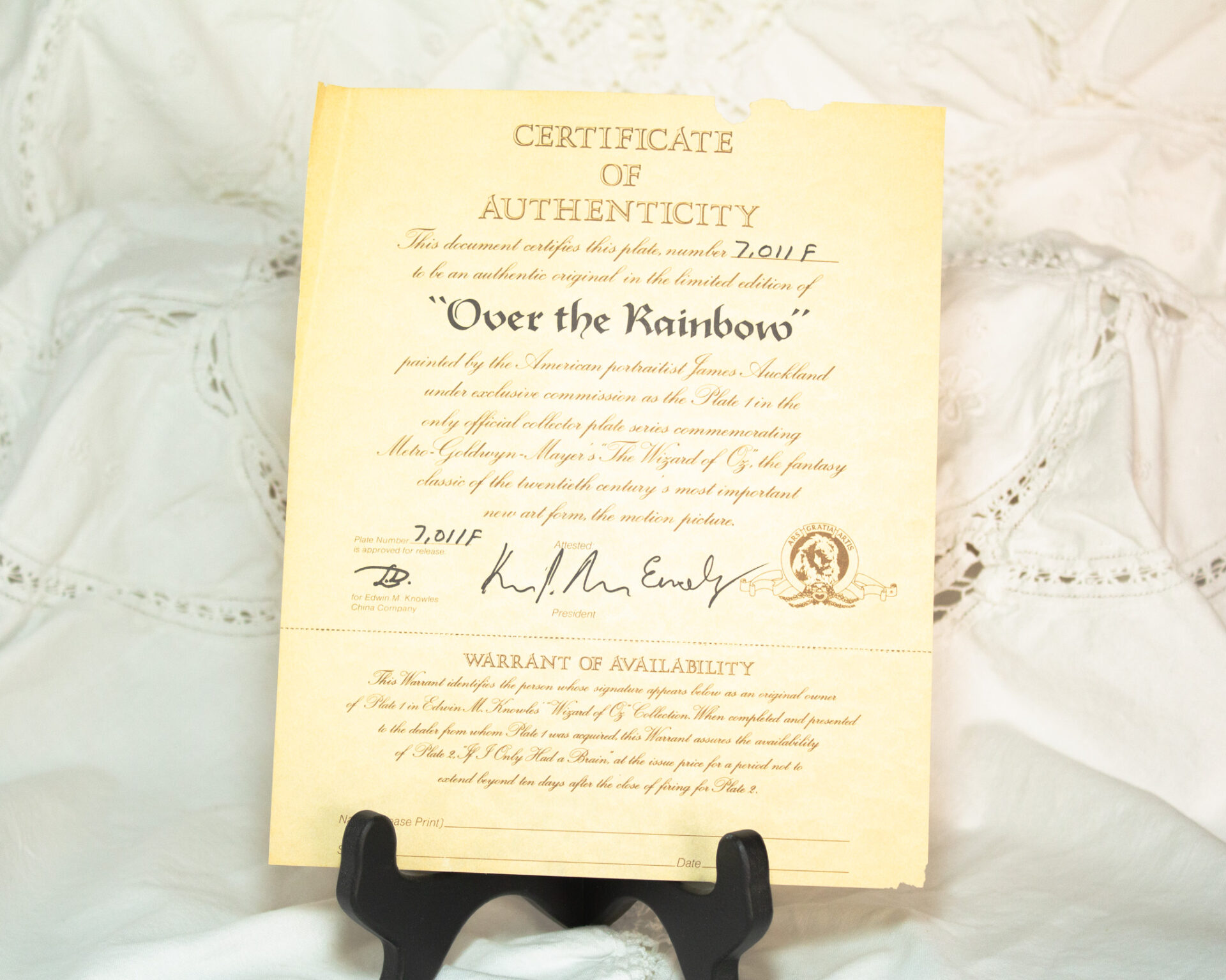 Wizard of Oz Collector Plate Over The Rainbow With COAs 1977
