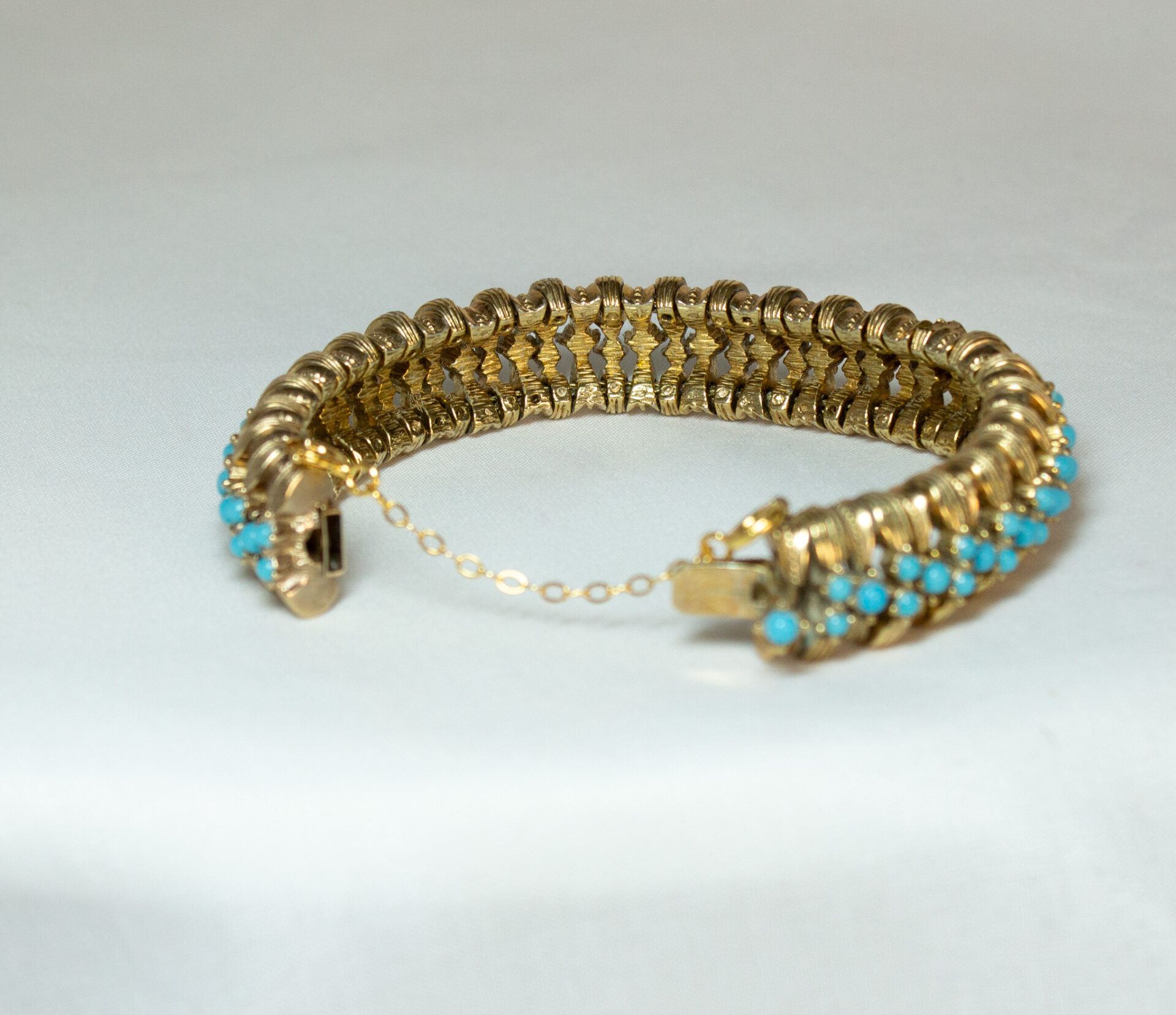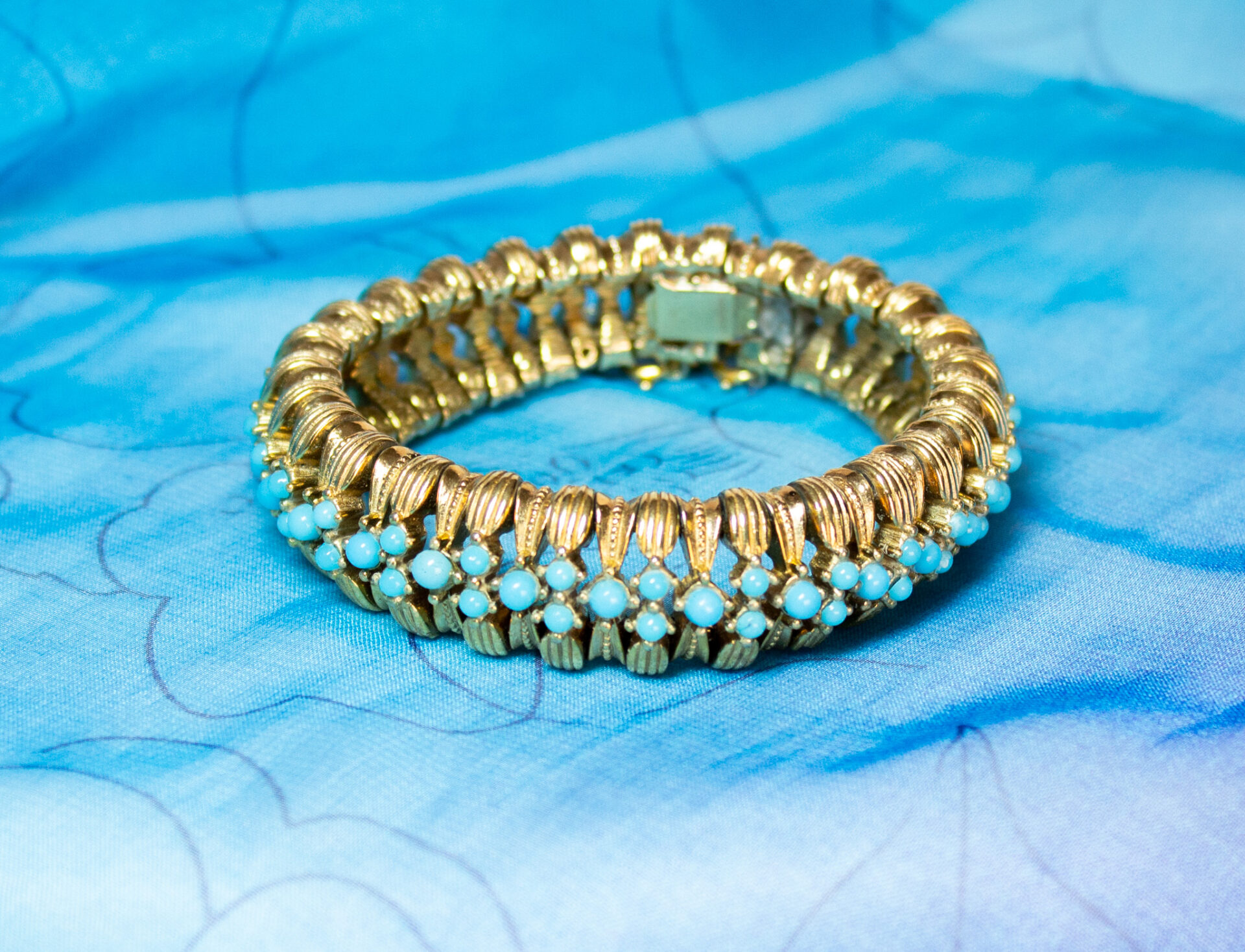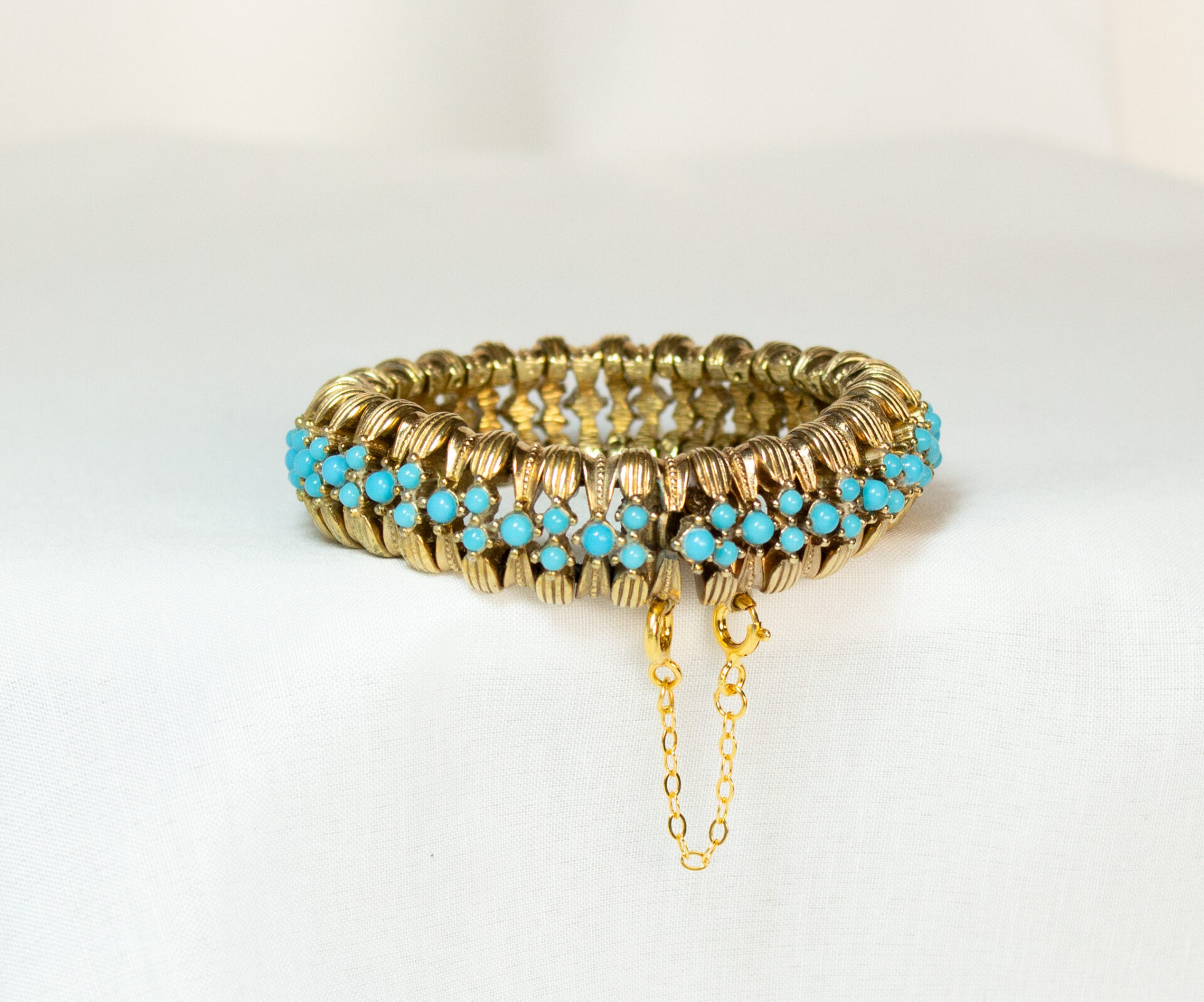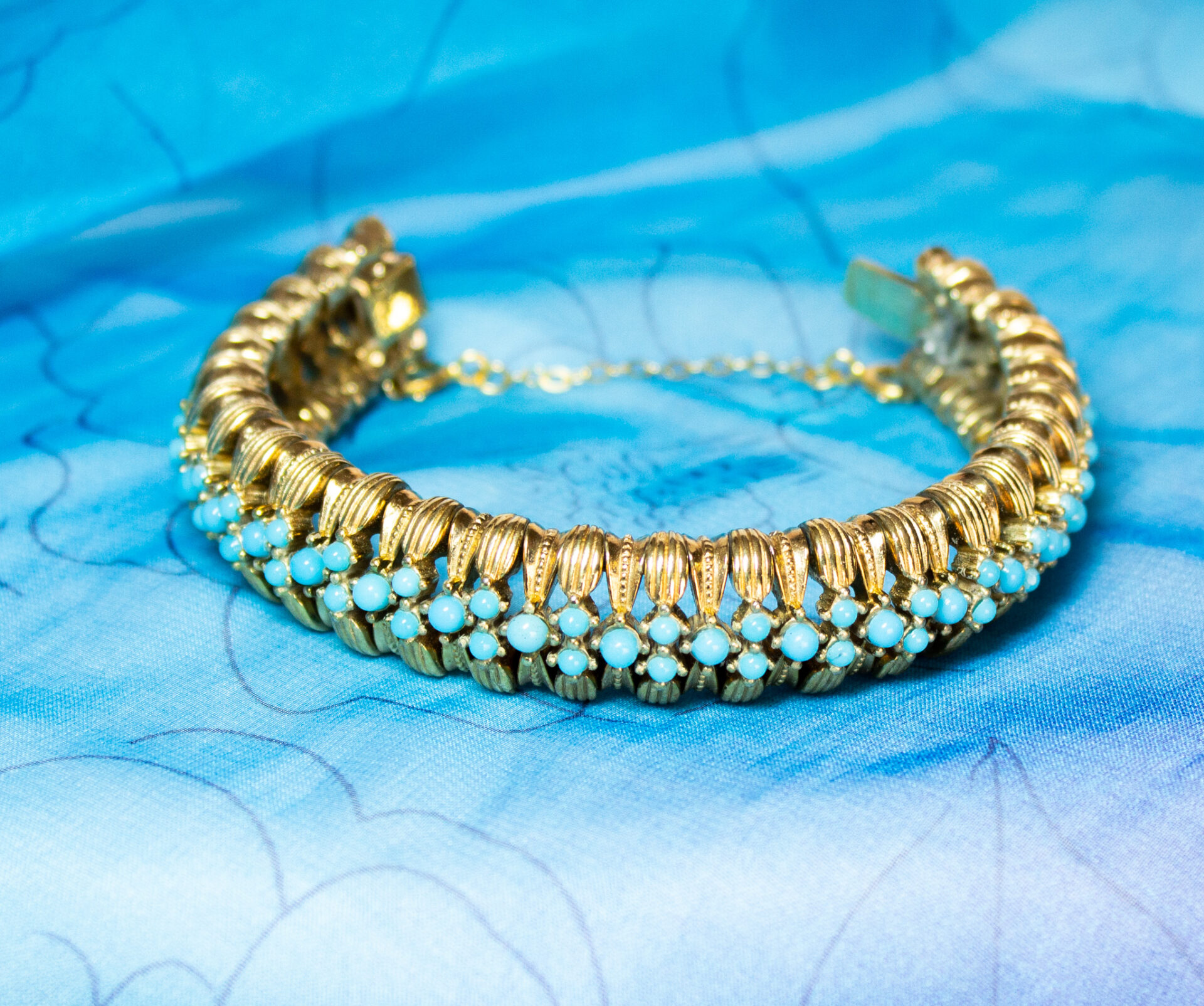 Ciner Faux Turquoise Gold Tone Bracelet Hidden Clasp Safety Chain