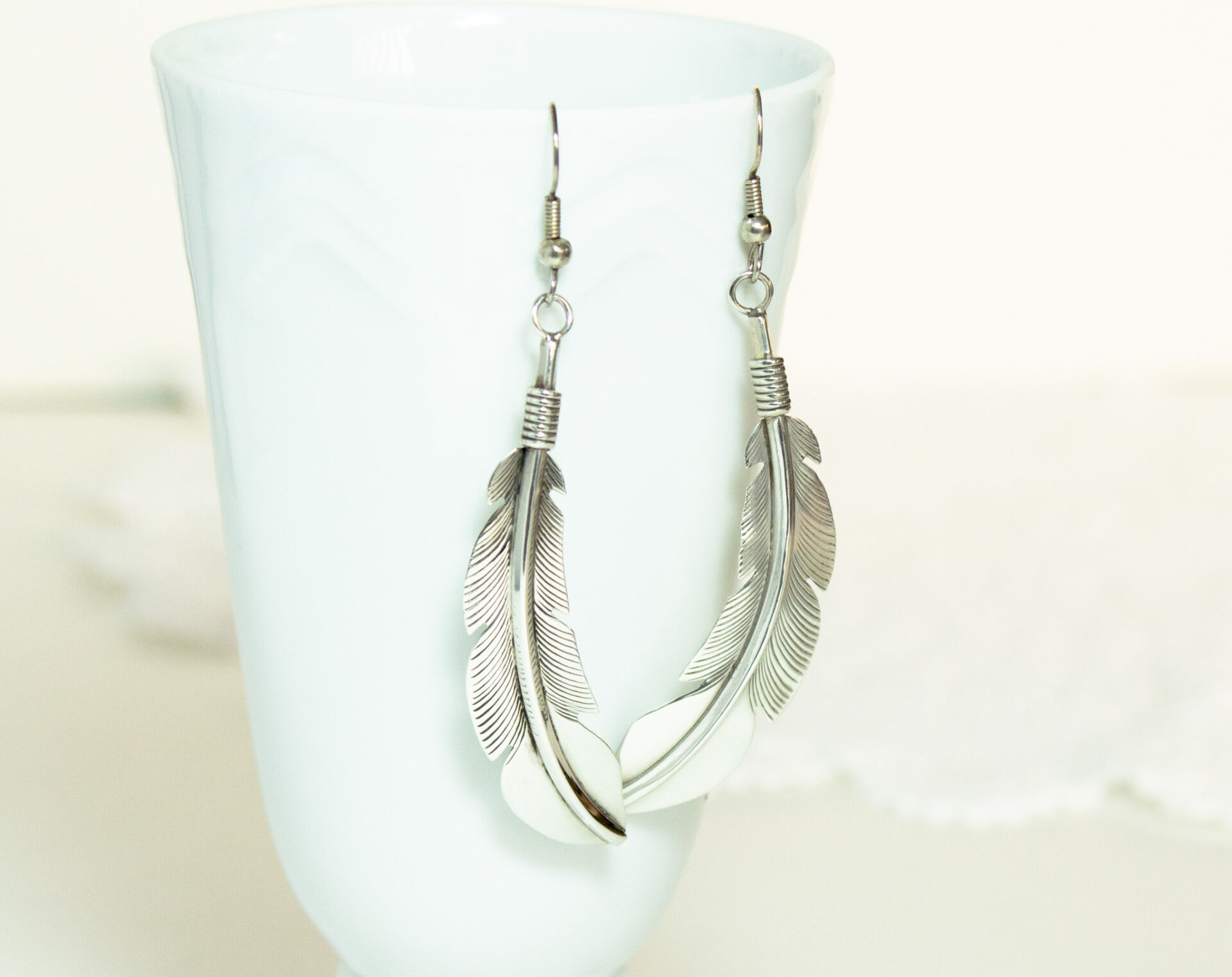 Dangle Feather Earrings Measure 2 1/4 in Length.