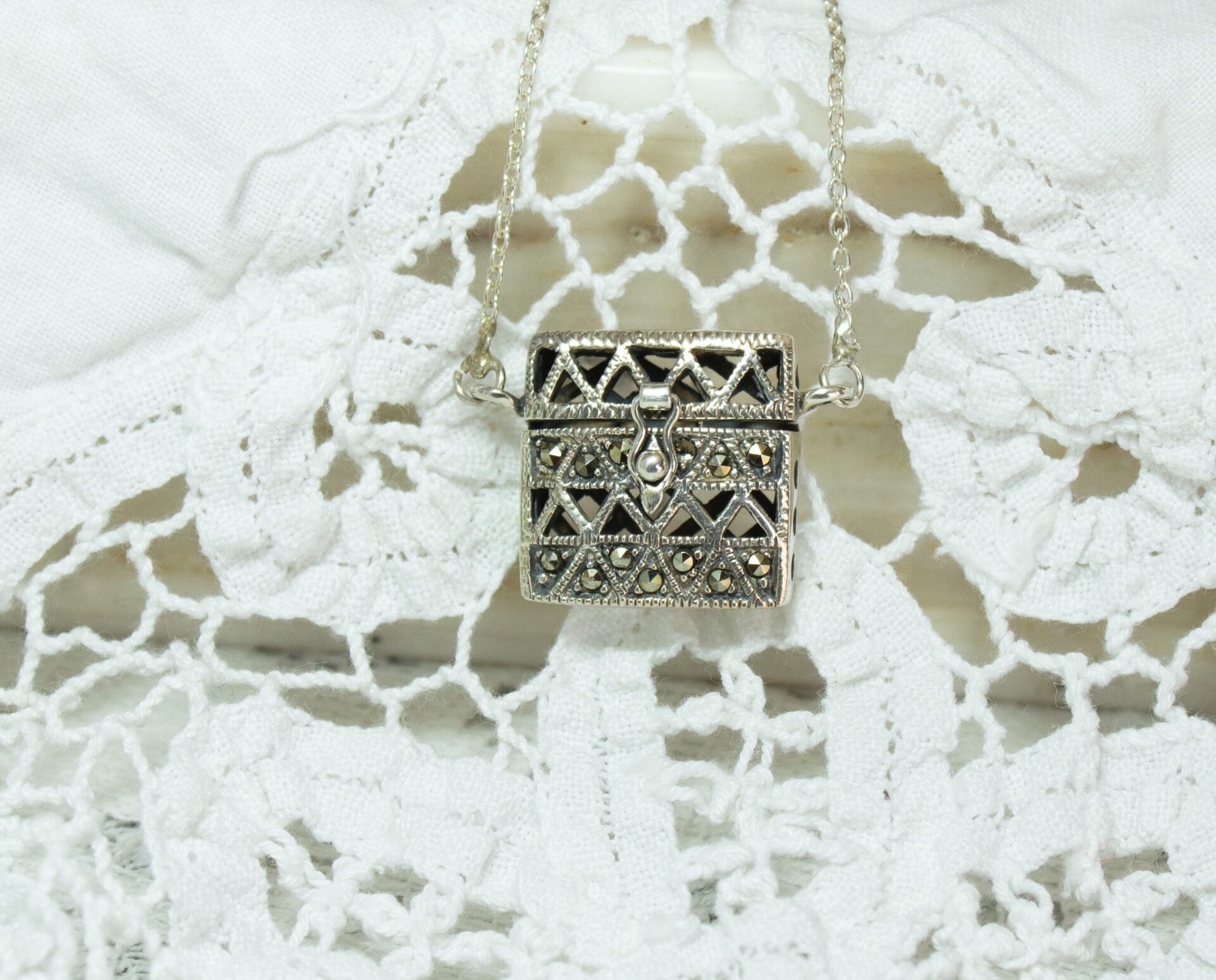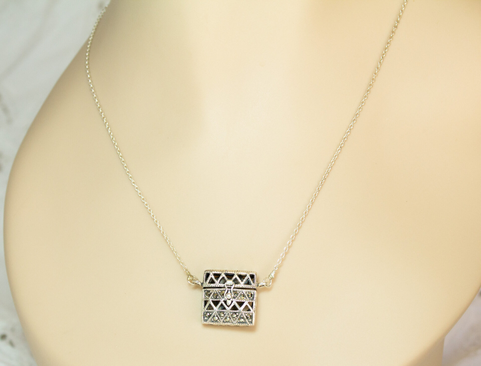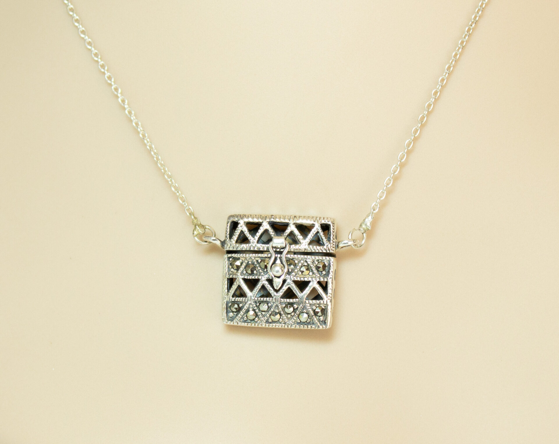 Sterling Amulet Locket Box Pendant Necklace