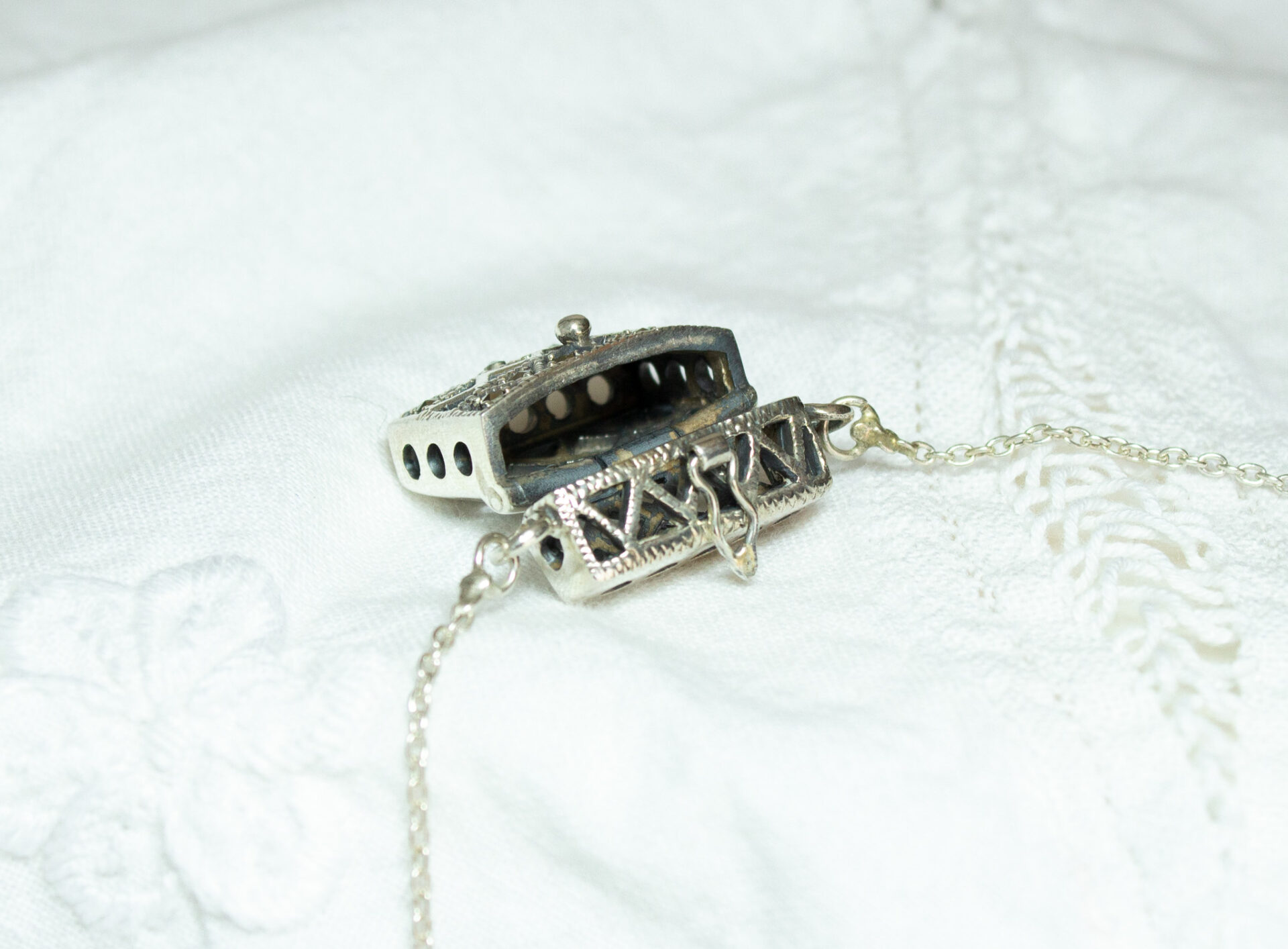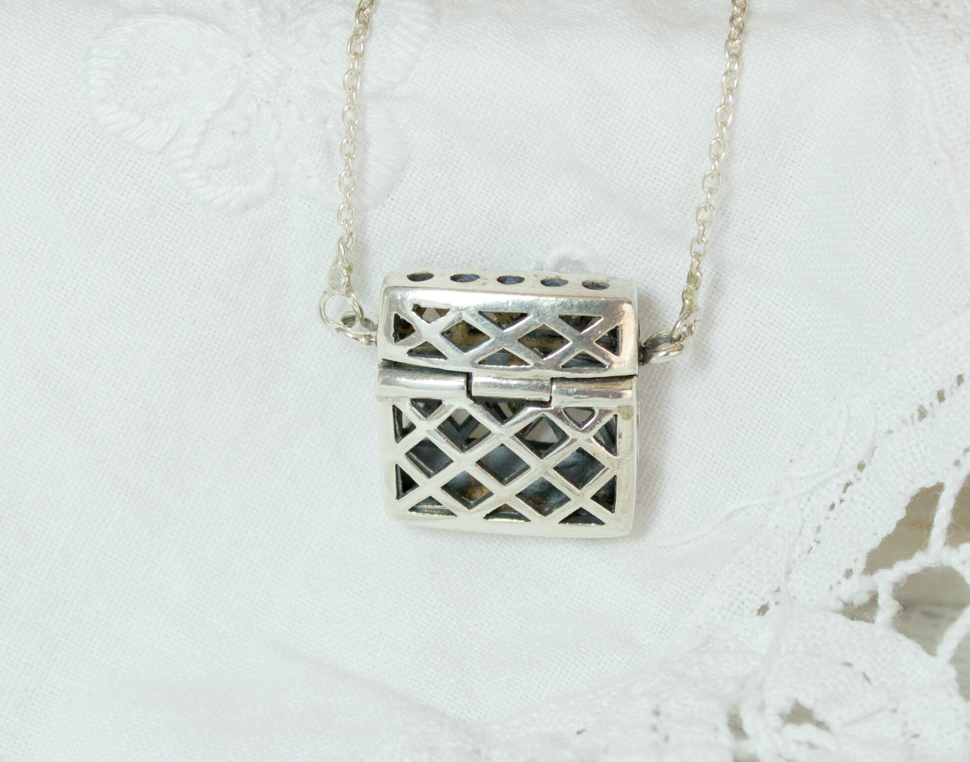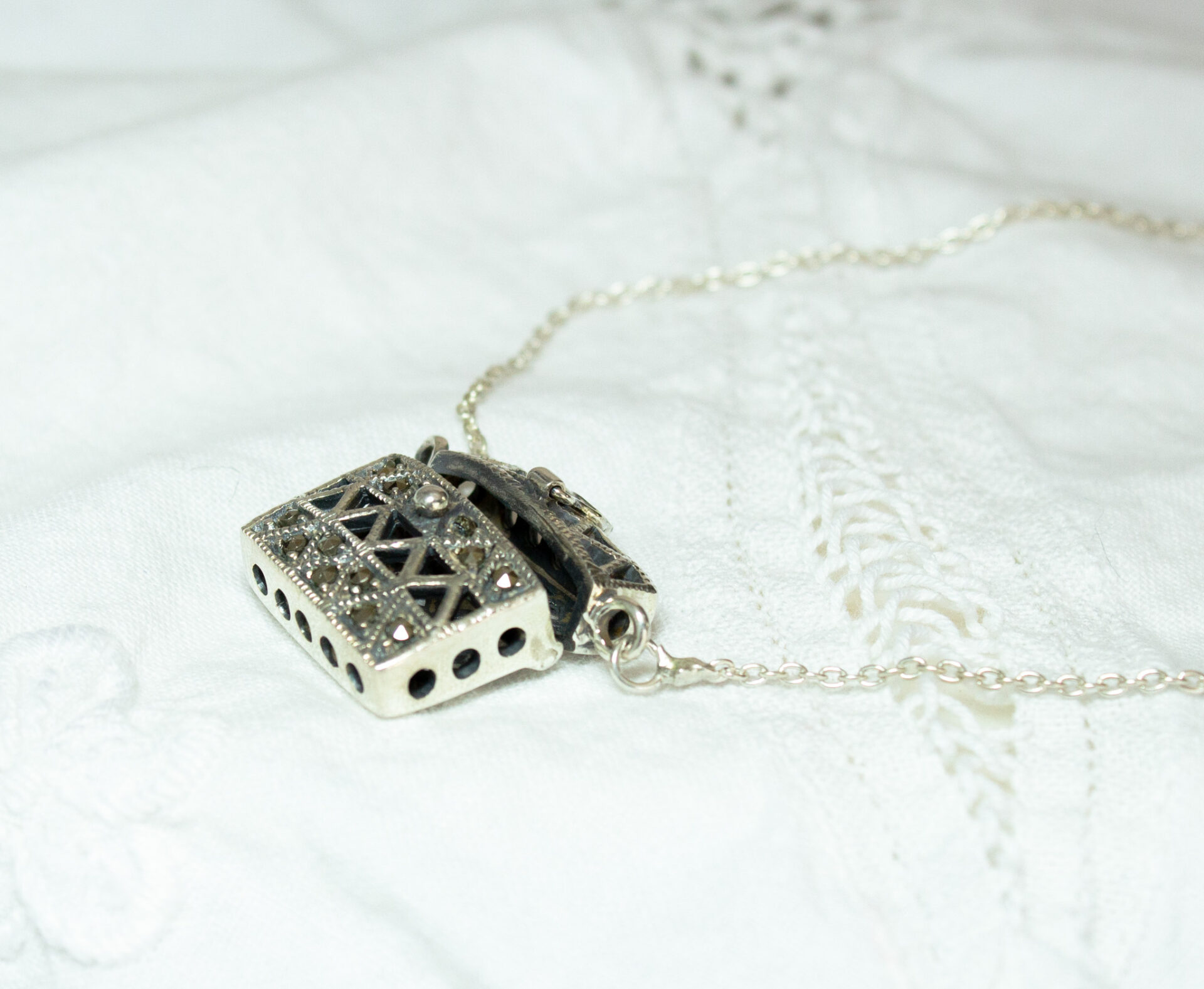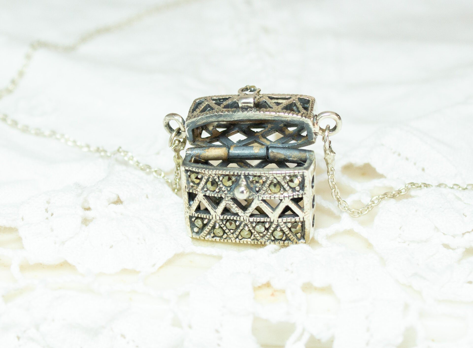 Sterling Amulet Locket Box Pendant Necklace