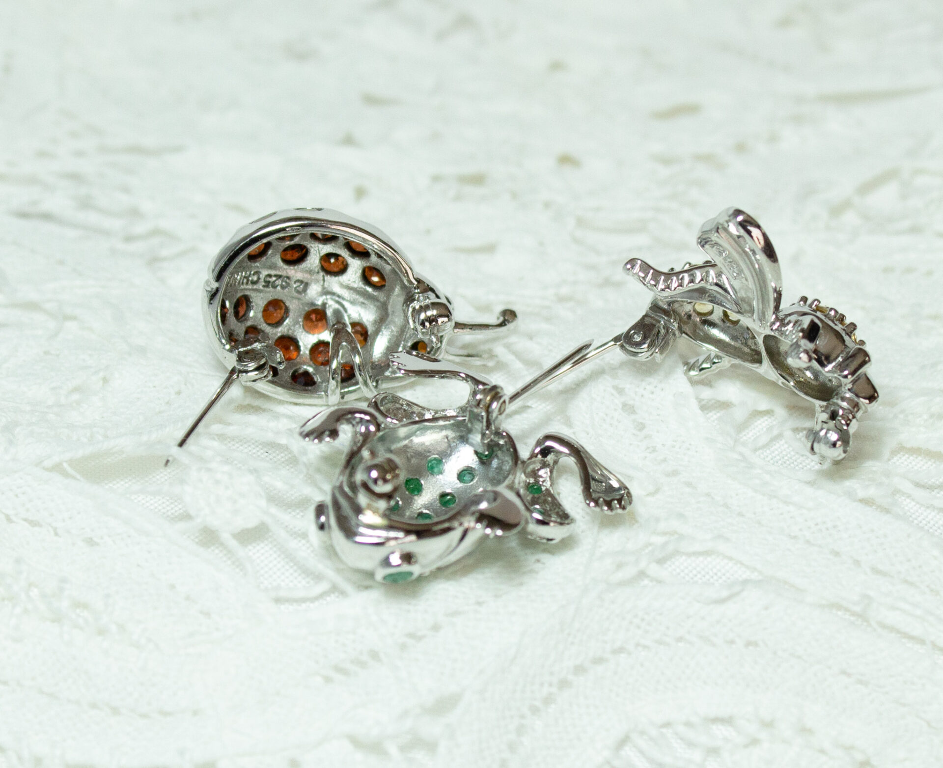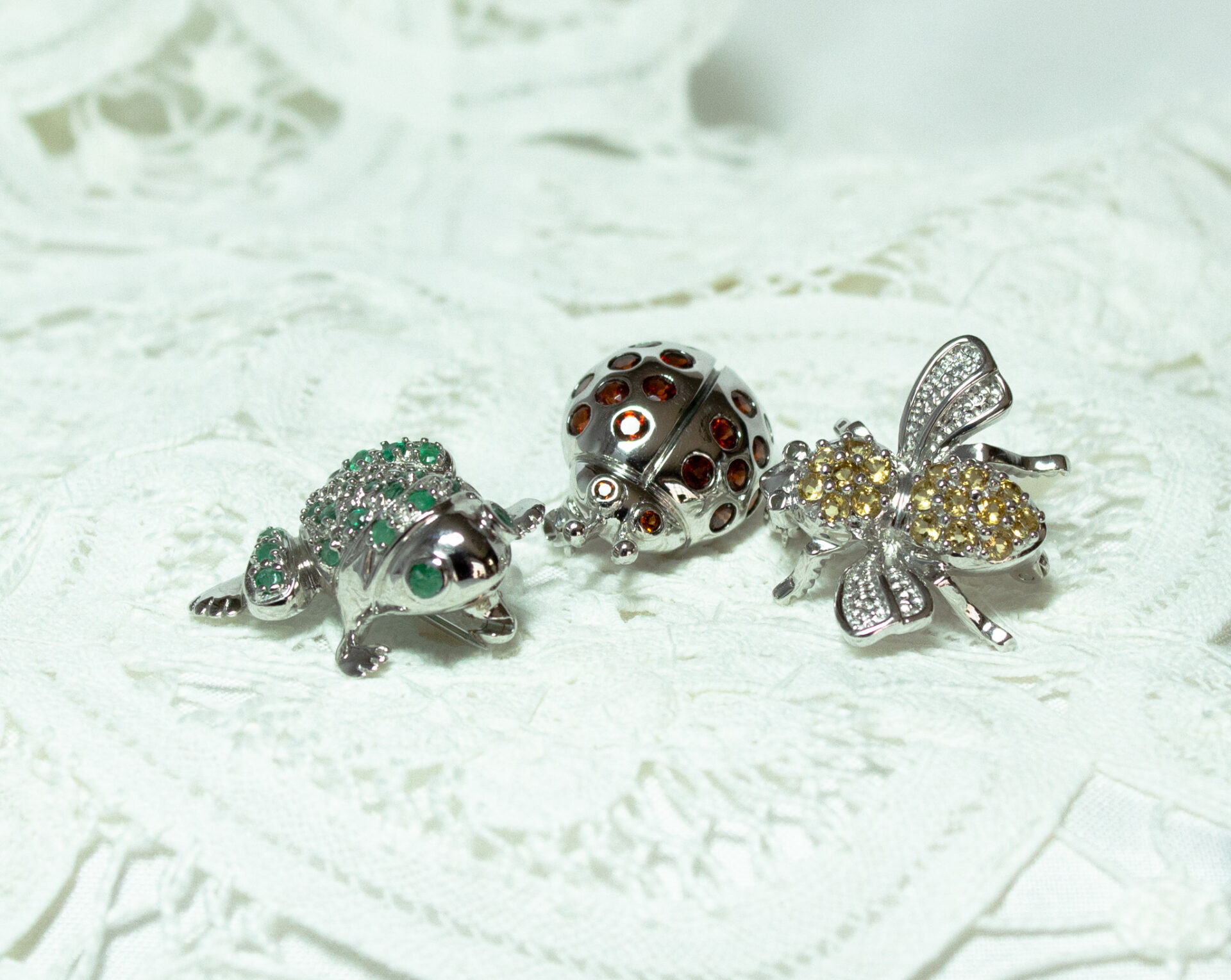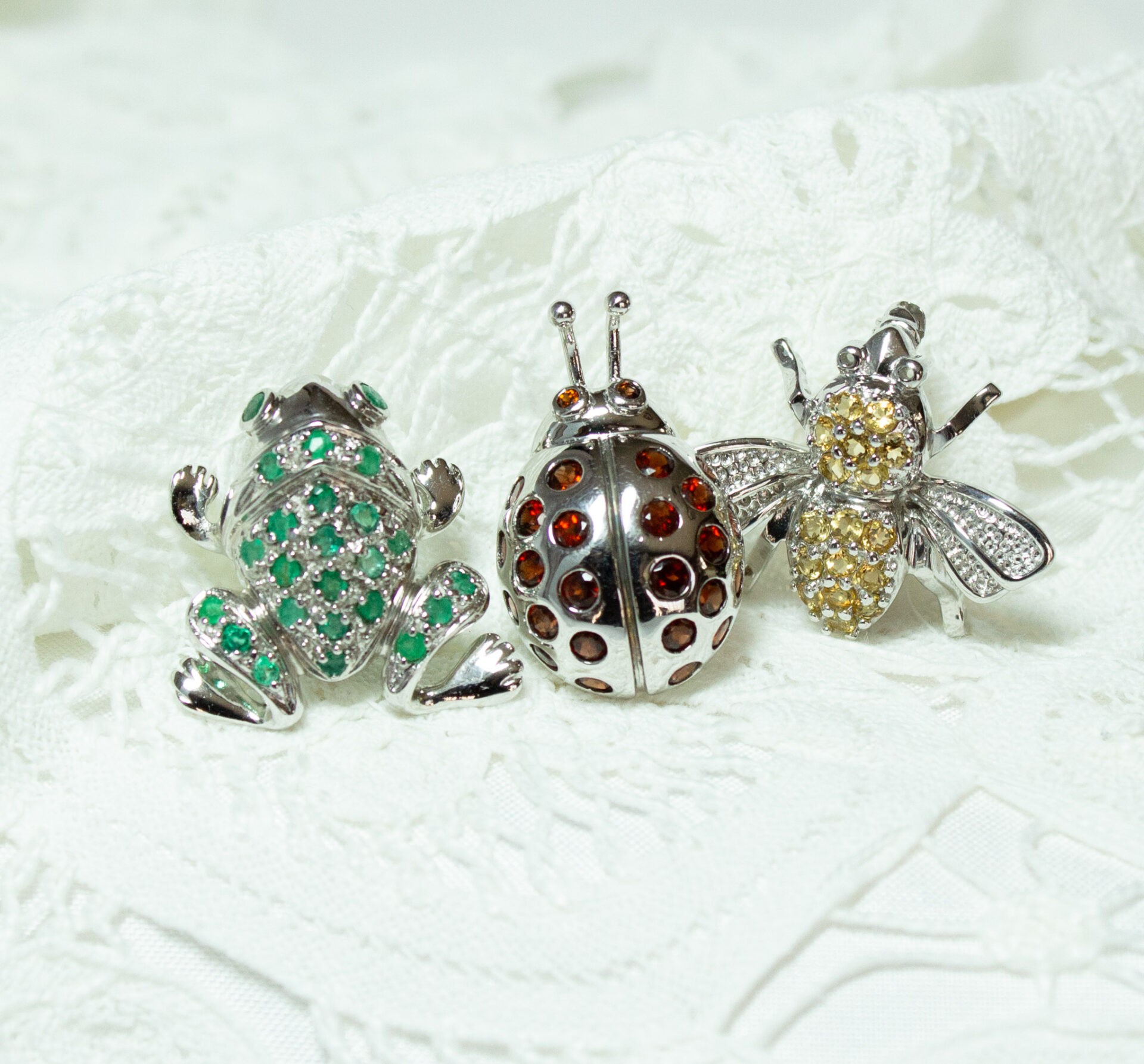 Sterling Scatter Pins Bee Frog and Lady Bug
