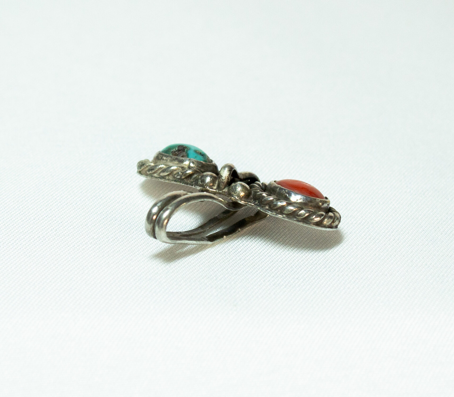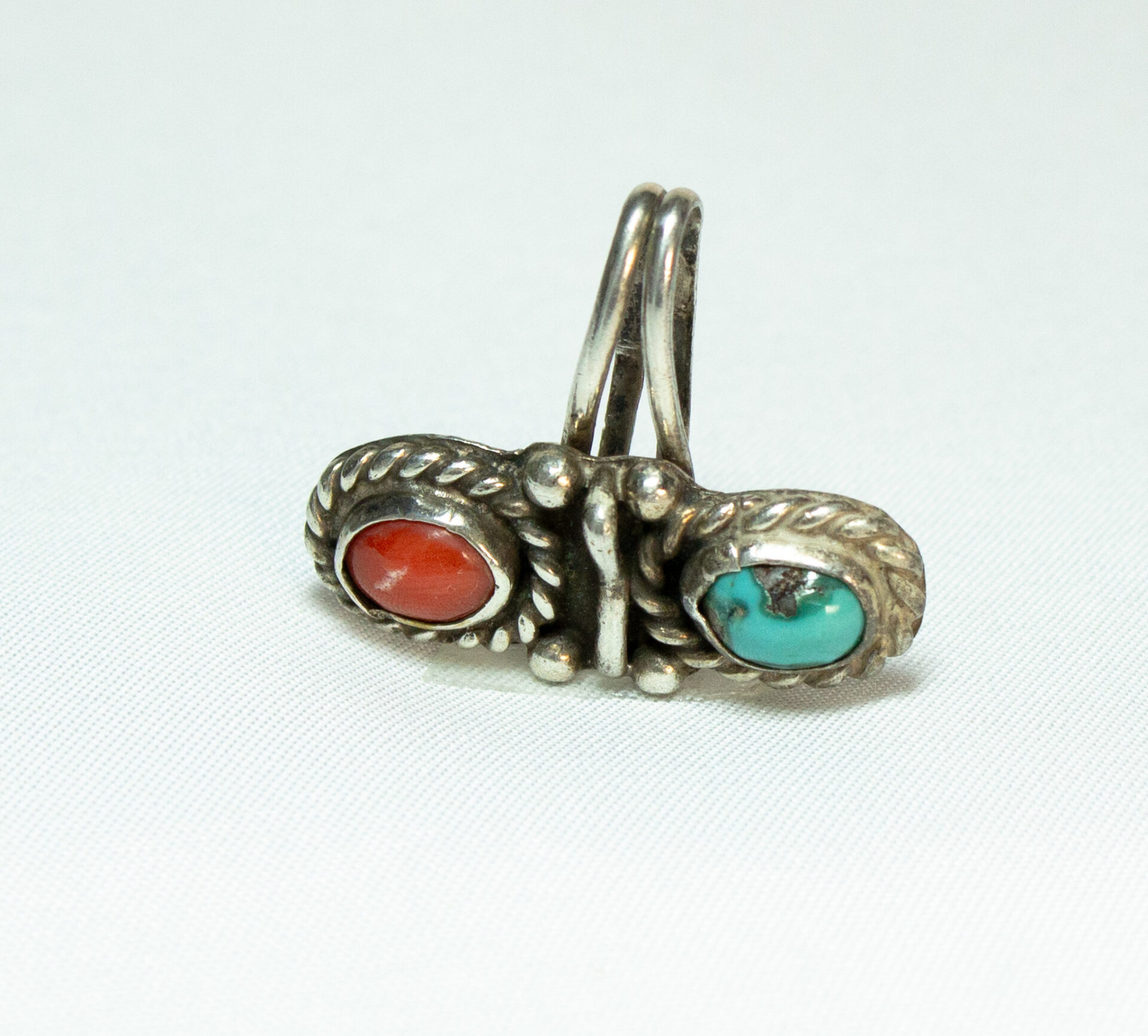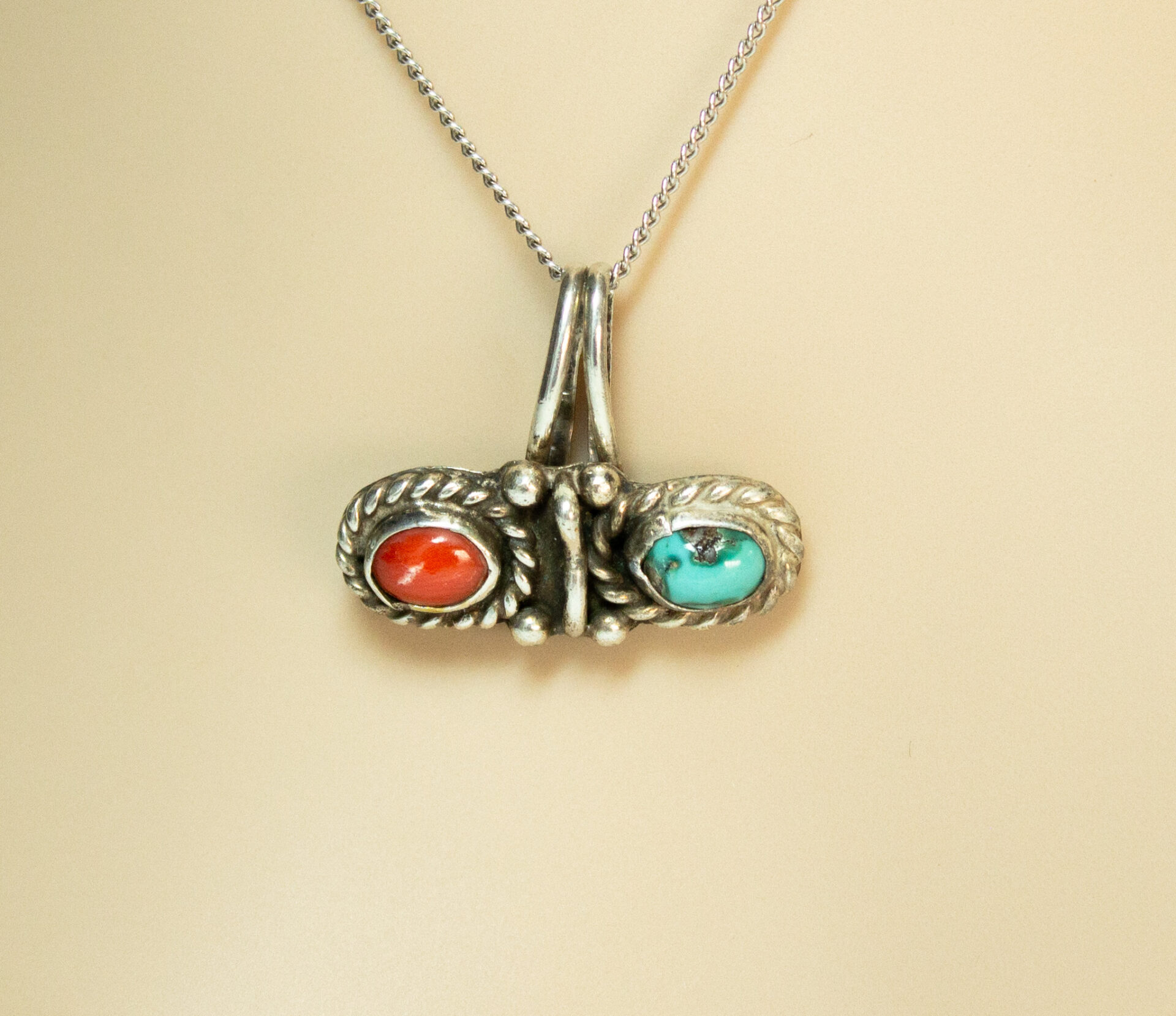 Turquoise Coral Sterling Pendant Signed BR