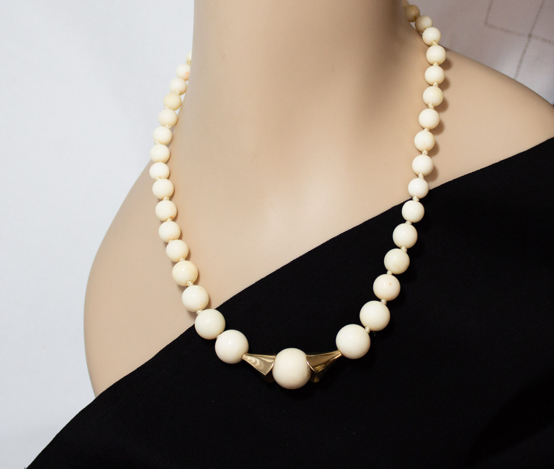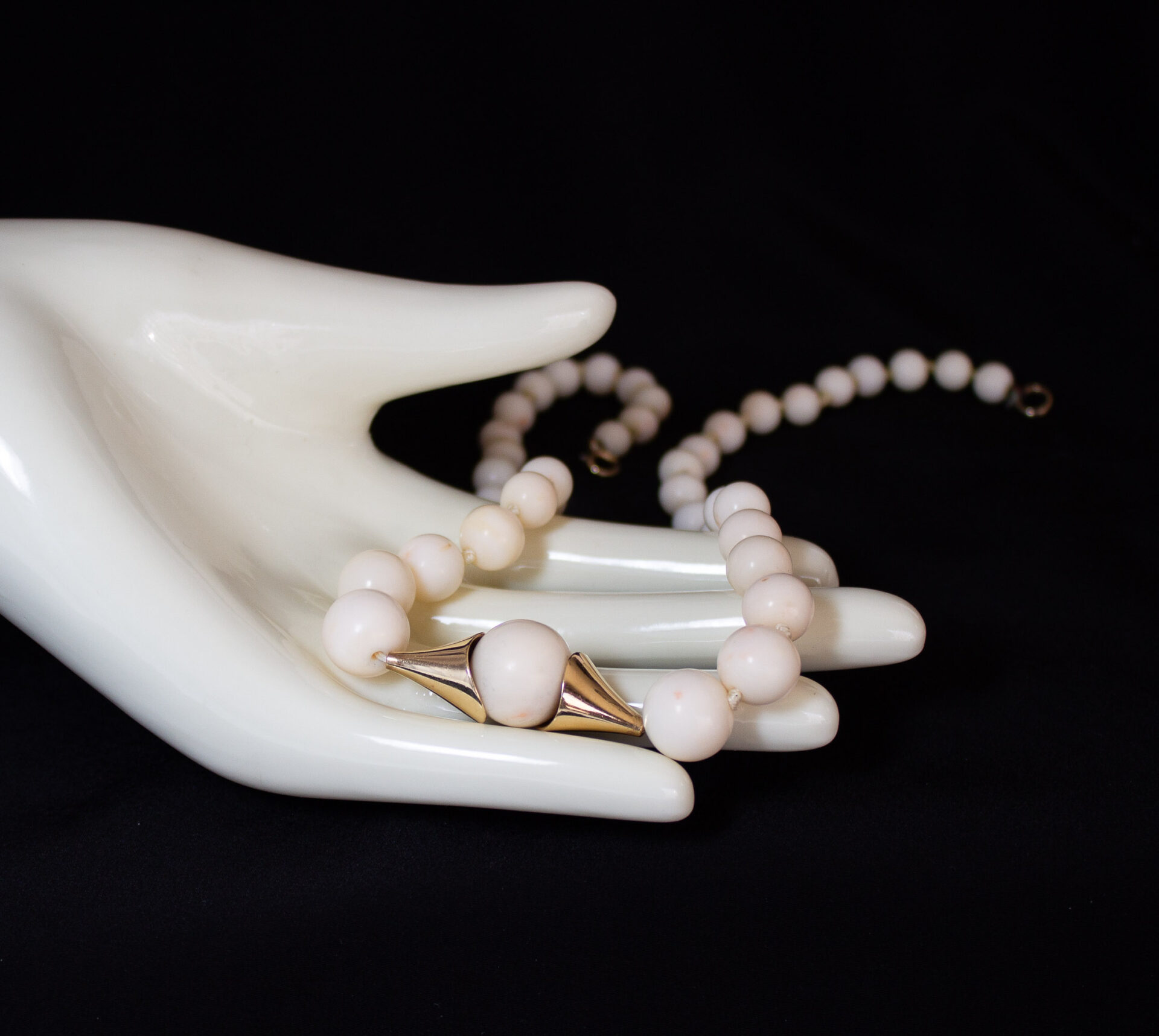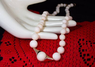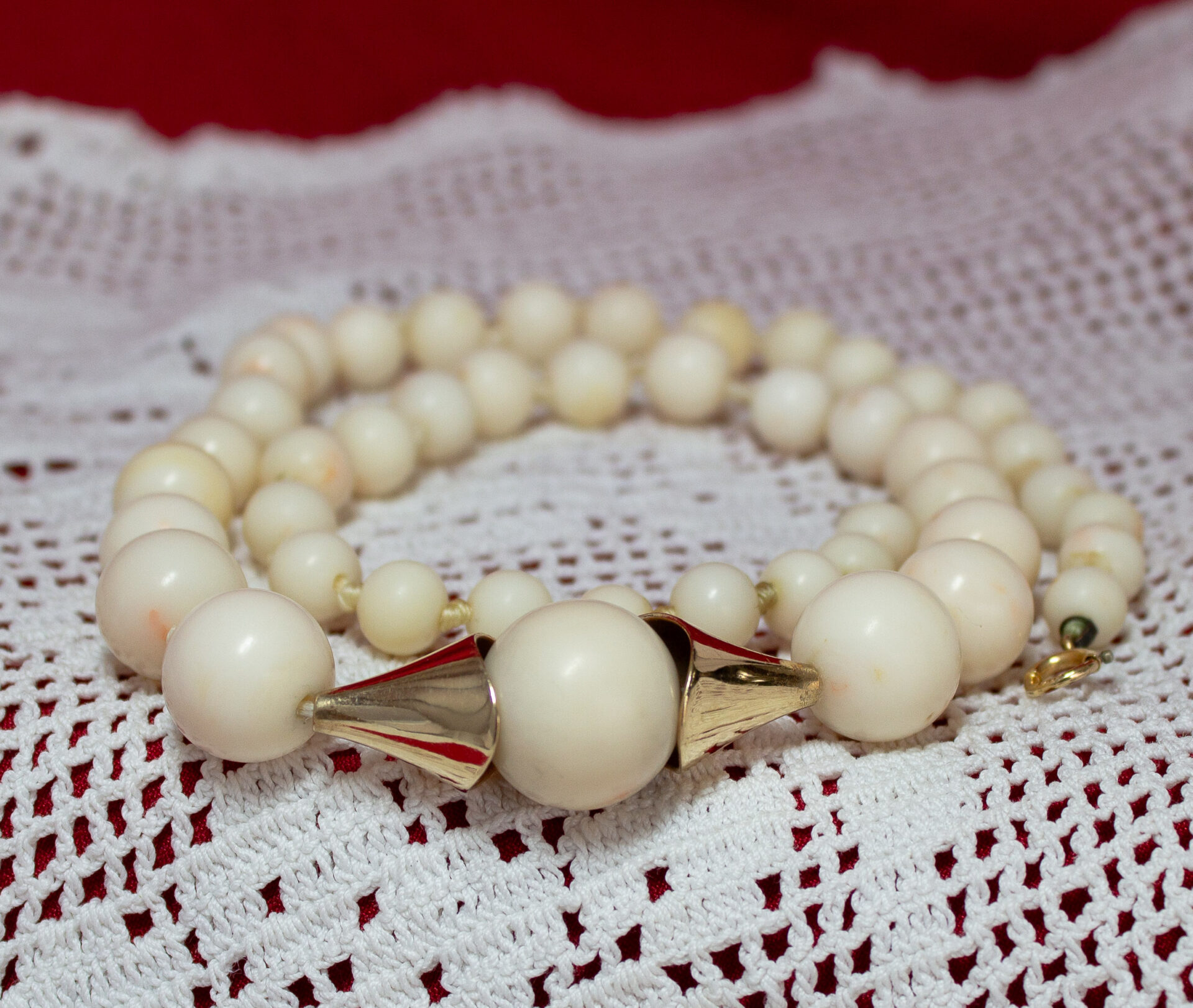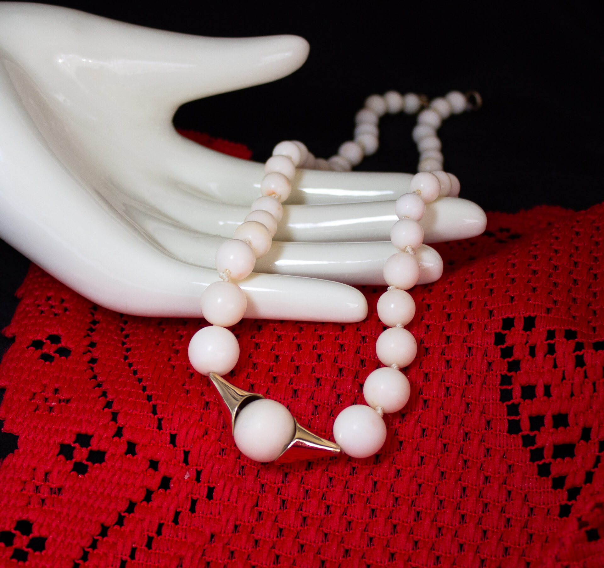 Classic Beauty Angel Skin Coral Necklace With 14K Gold Adornment and 14K Gold Clasp.