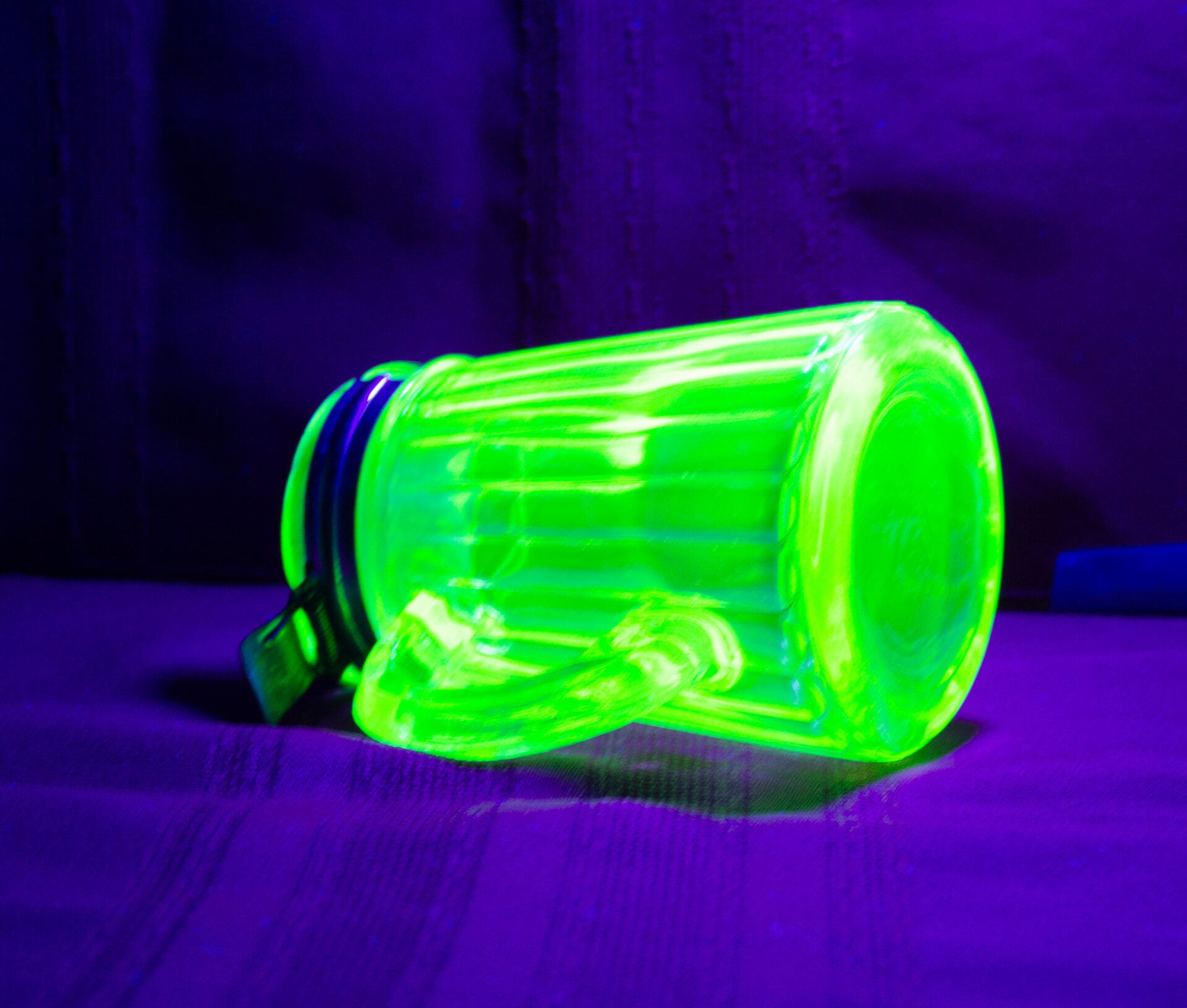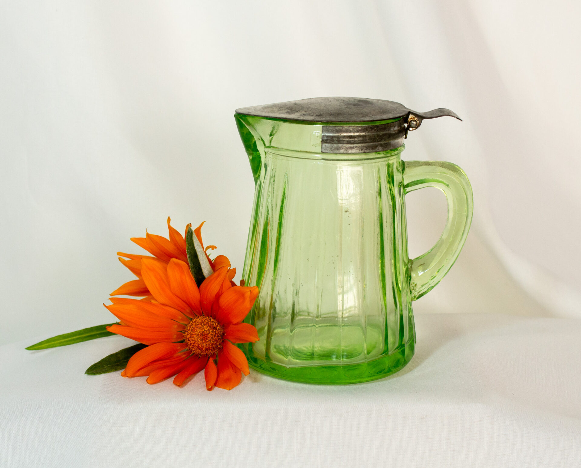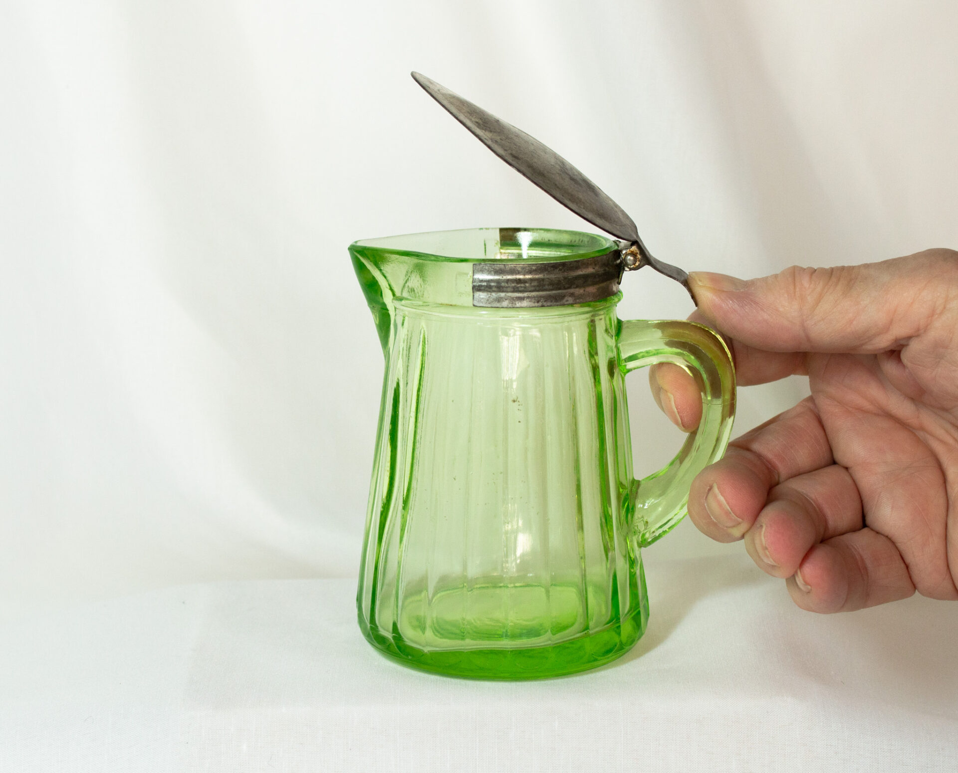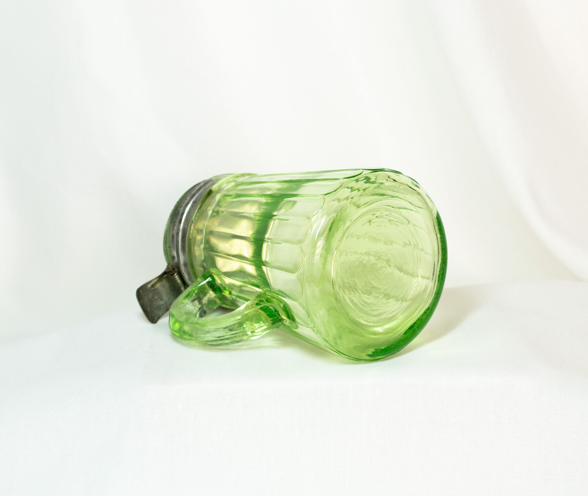 Uranium Glass Syrup Pitcher With Tin Lid Dated 1916
